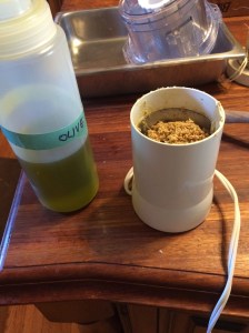 While the eggplant is in the oven, prep the other stuff. You can buy tahini, but I make it ’cause I’m fancy ‘n shit. To make combine oil, sesame seeds, and salt.