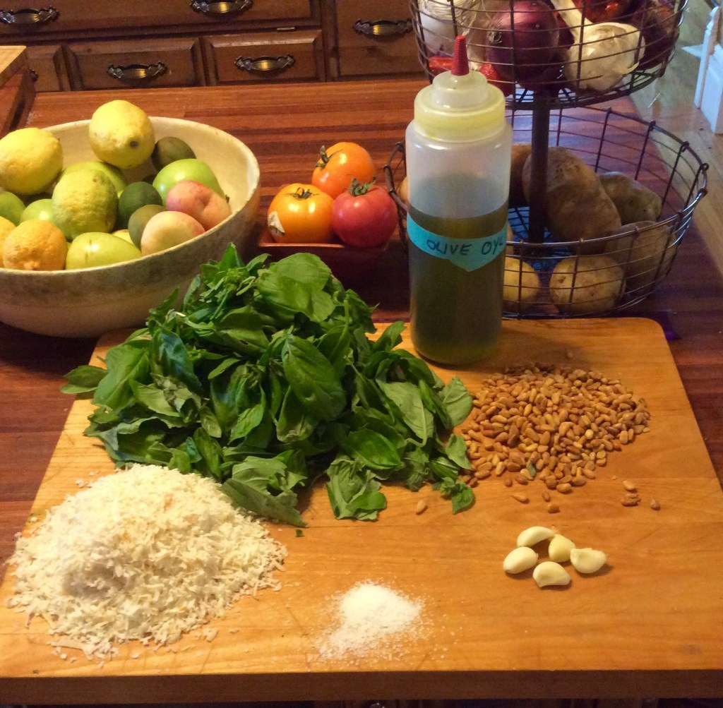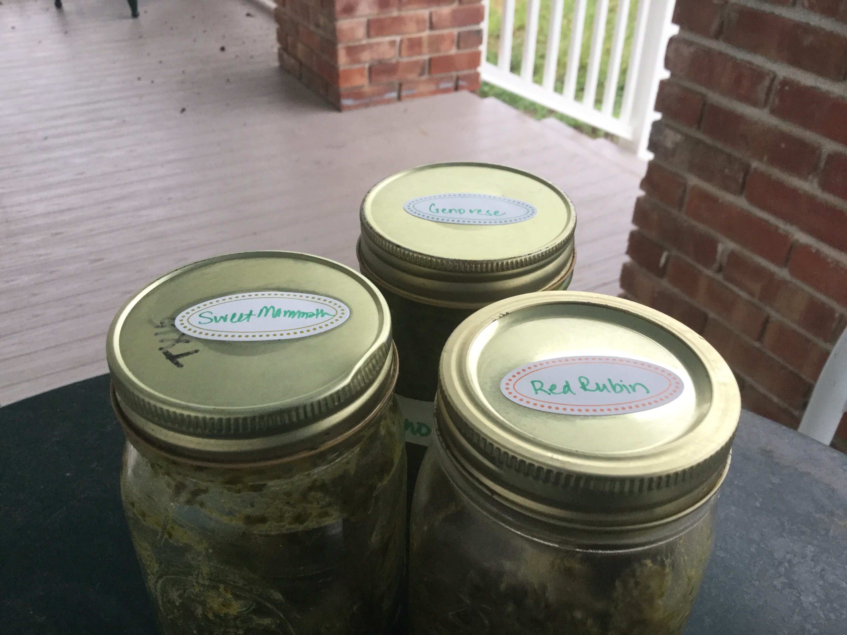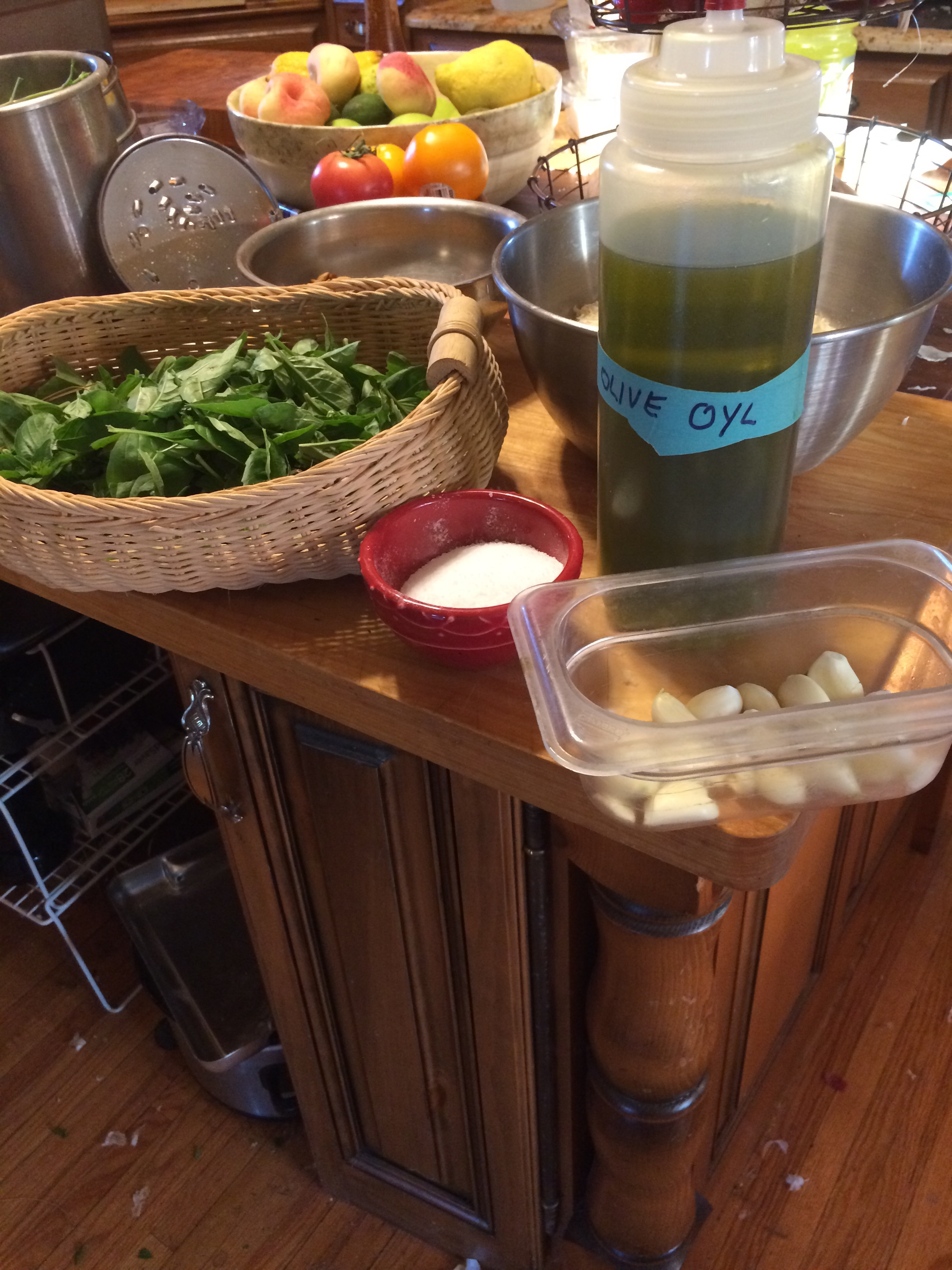 As noted before, we have an abundance of basil in our herb garden. We have three kinds, Mammoth Sweet, Genovese, and Red Rubin.