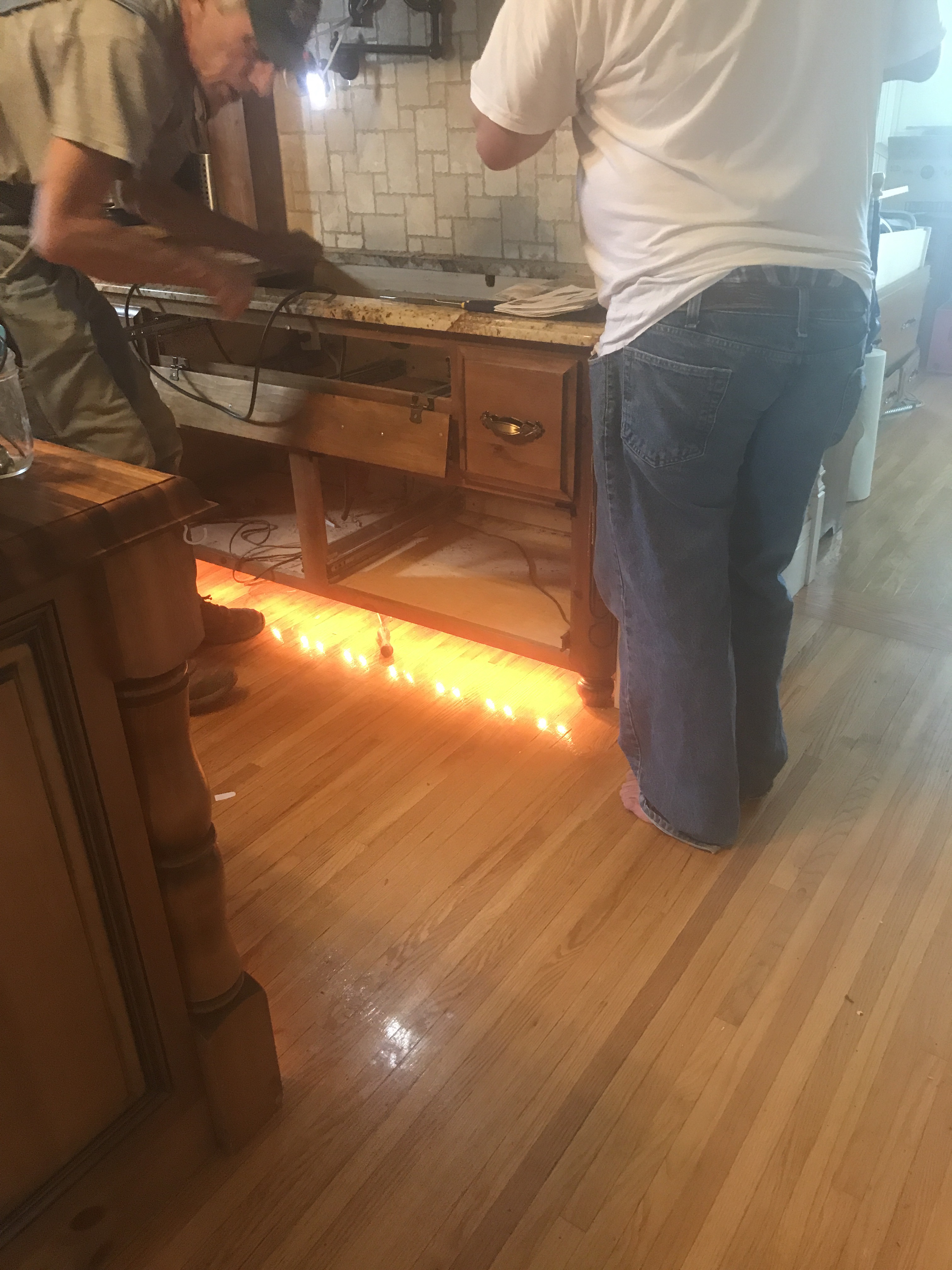 This does give you an excellent view of the bitchin toe kick lights in our kitchen that were installed because… who the hell knows?