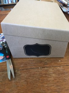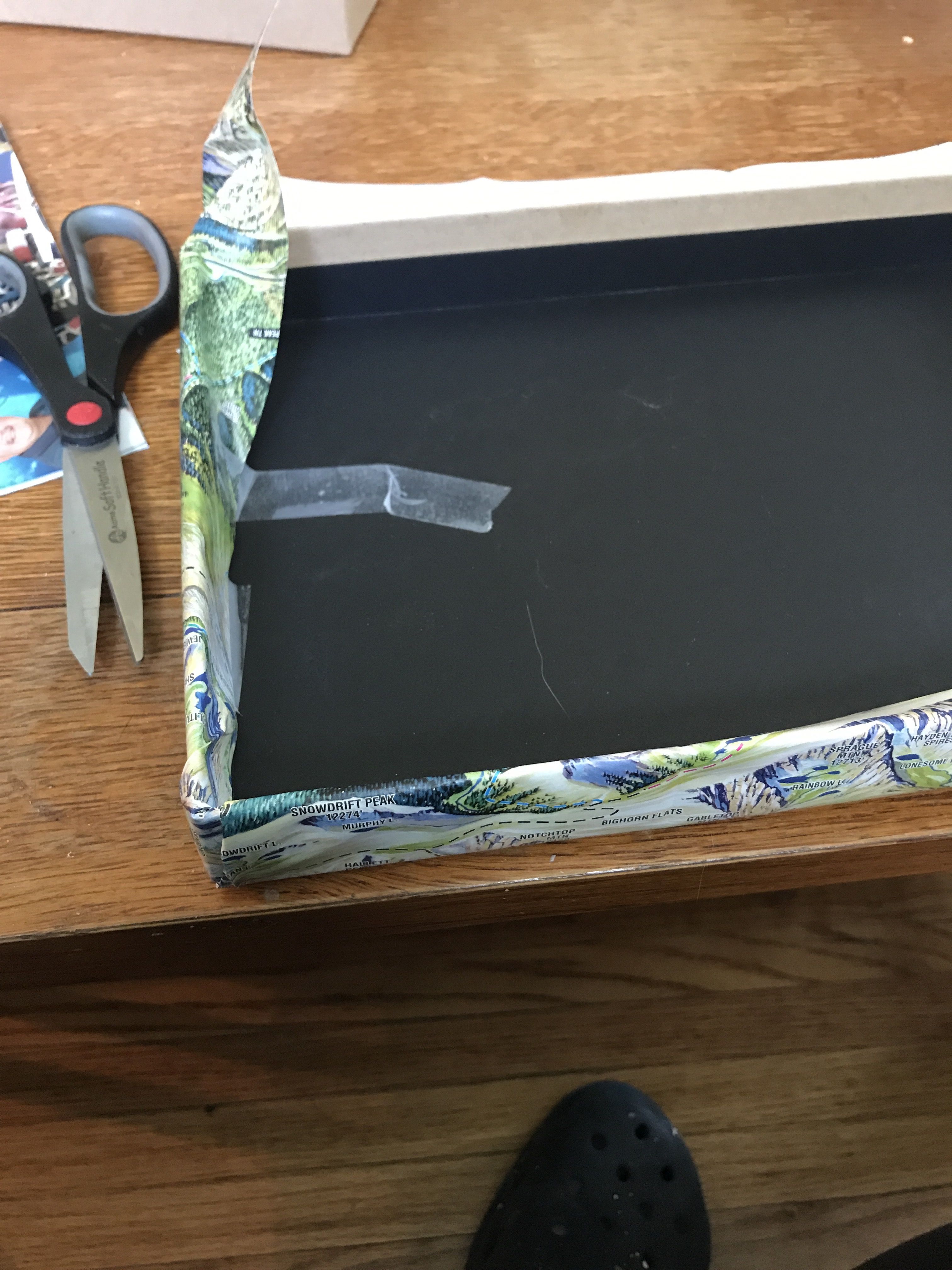 Glue (or tape in this case, because I really want a Topo map of where we got married) it to the top of the box.