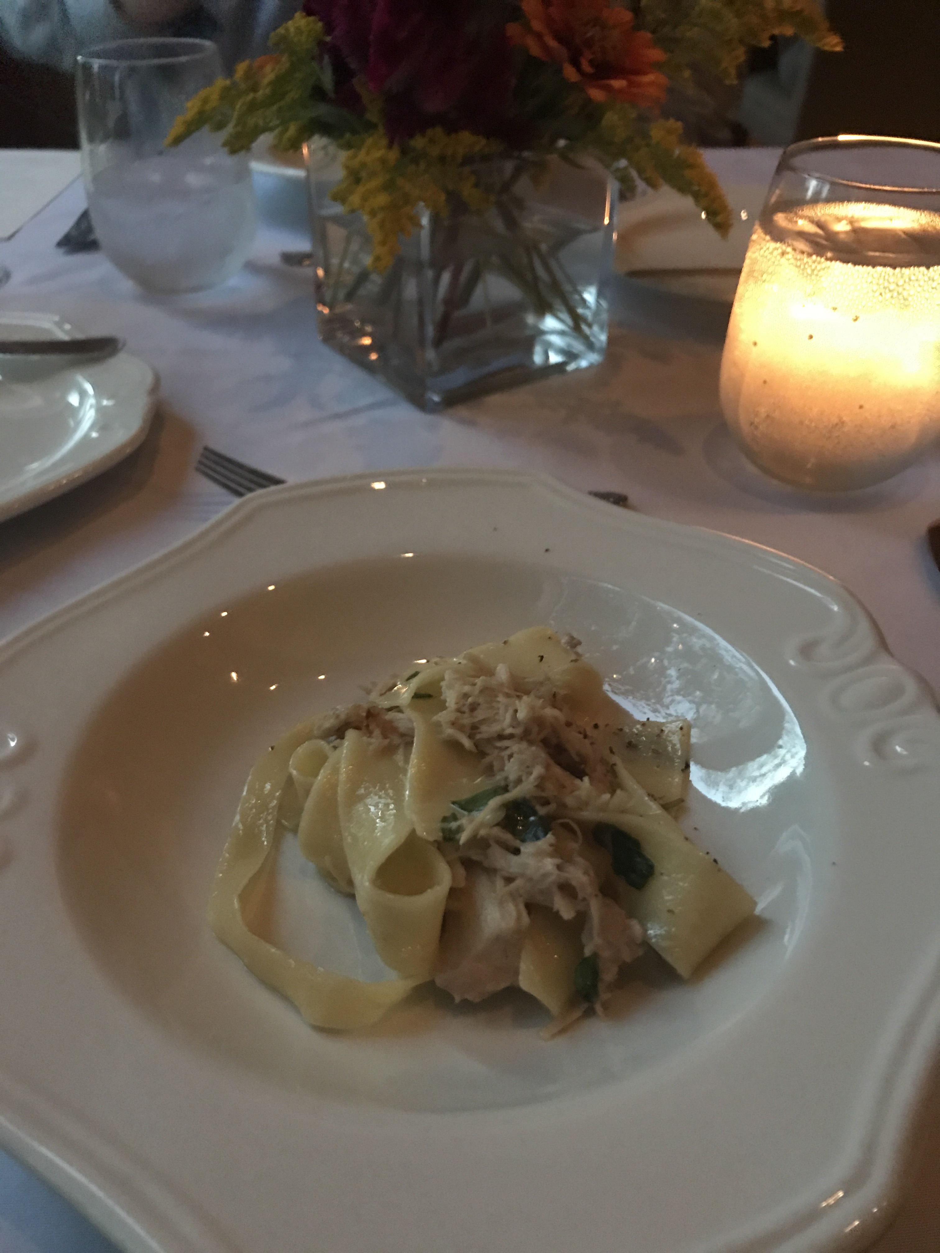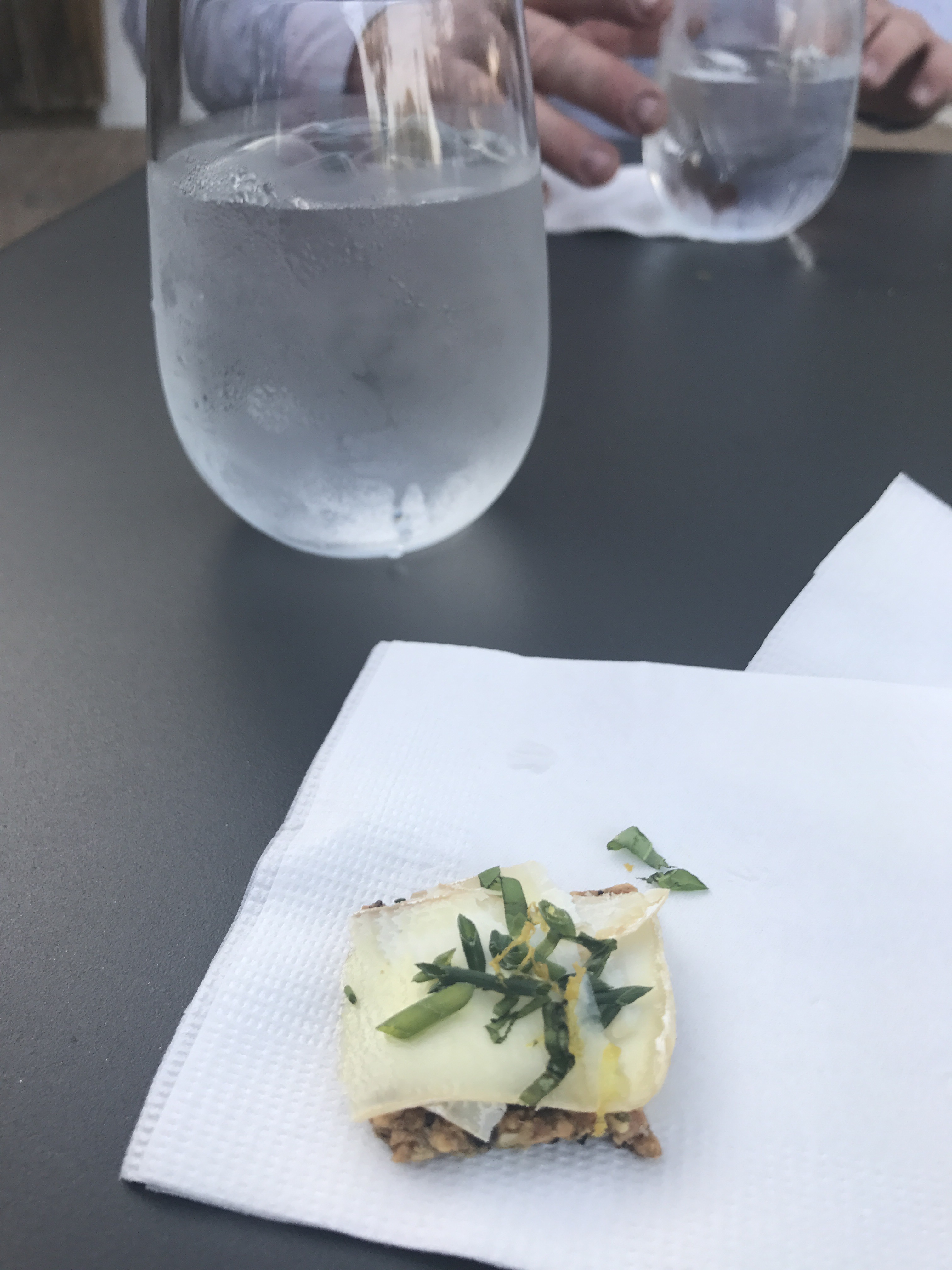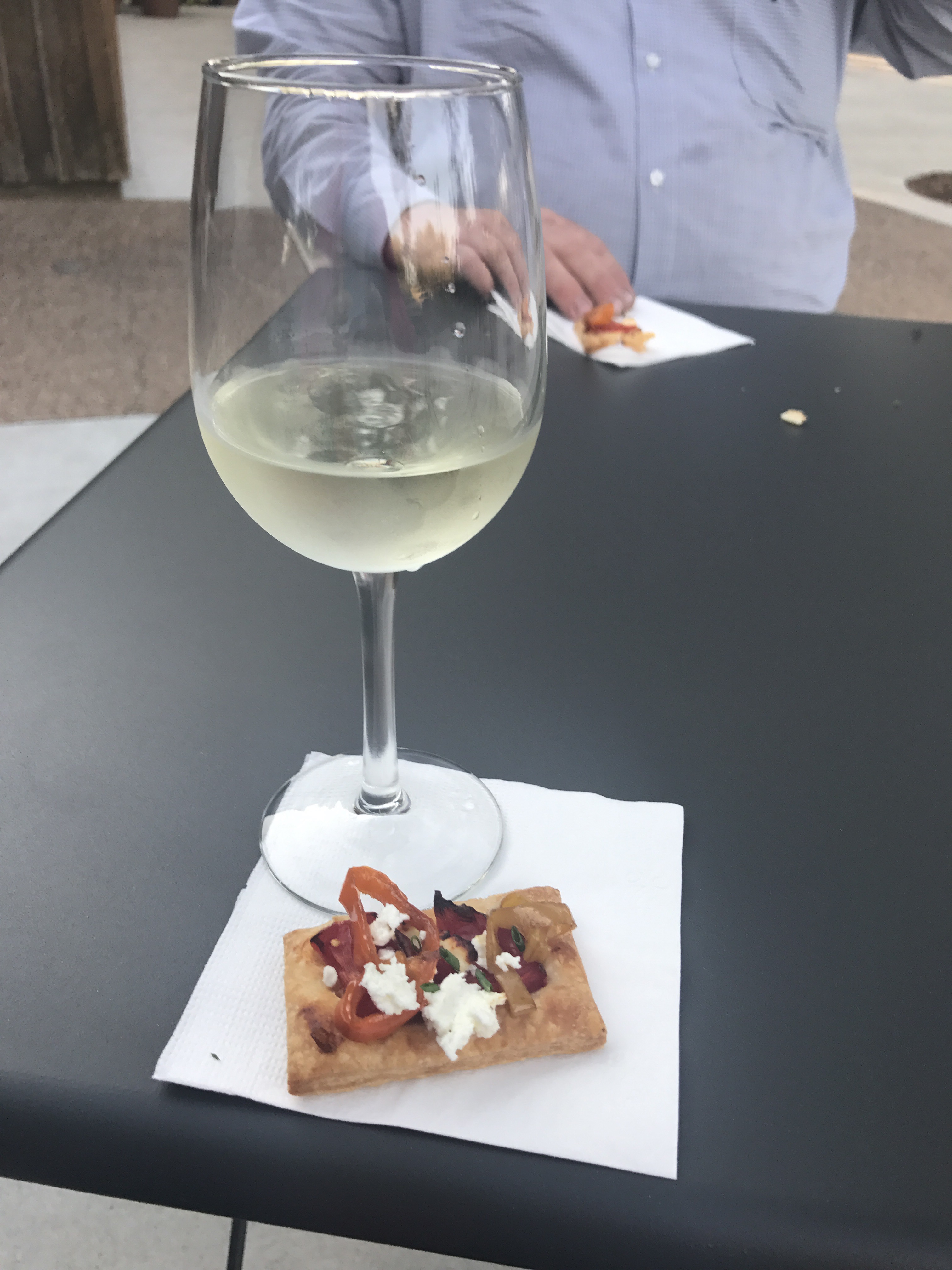 First was the hors d’oeuvres on the patio with a glass of wine.