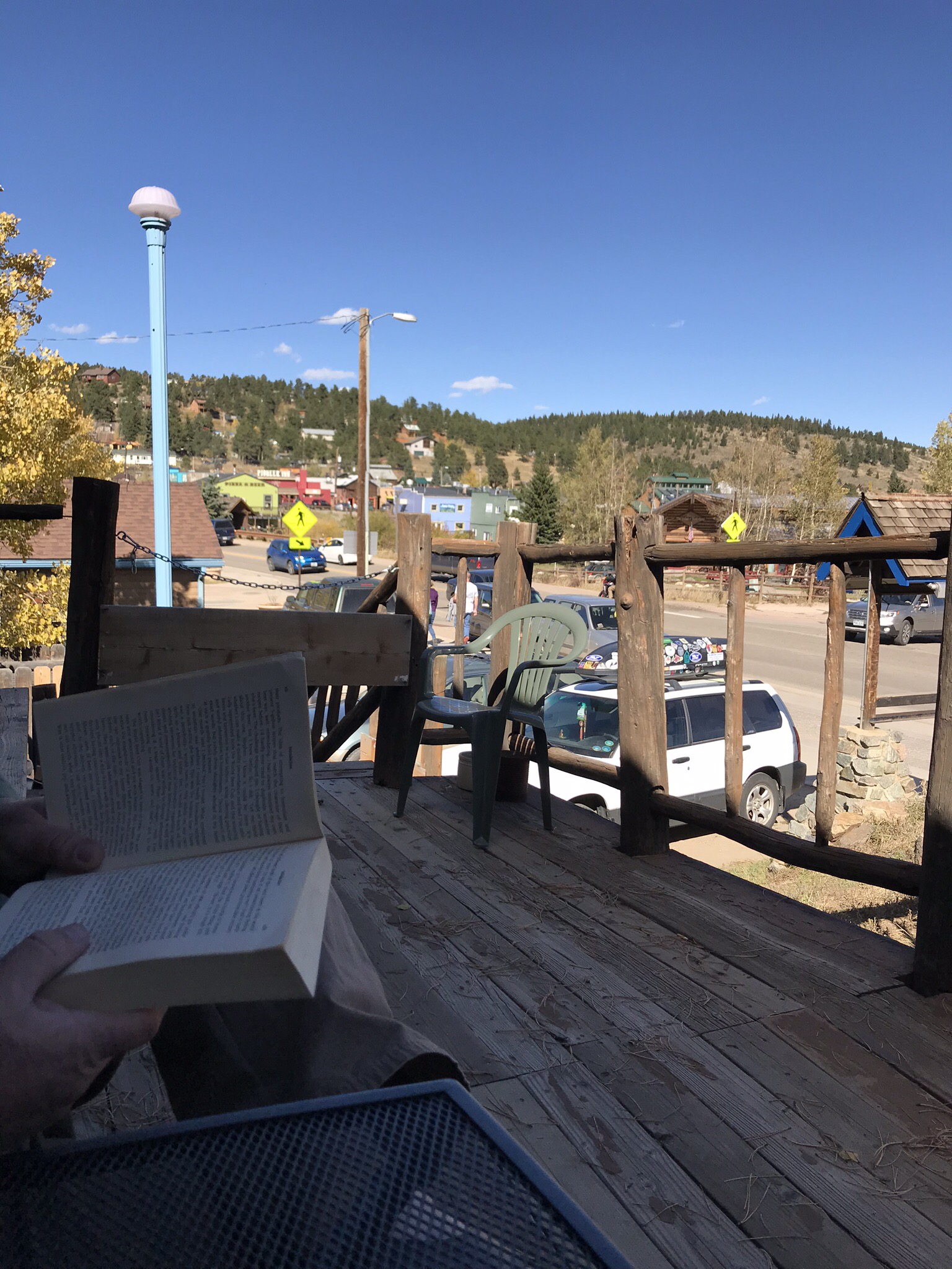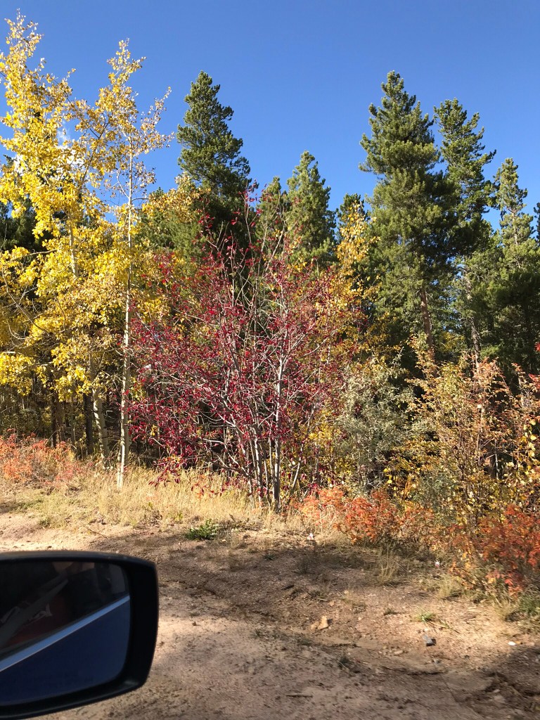 So we finally get out of town, like an hour after we leave. And decide to take the peak to peak highway again. This time, there’s no snow! Again, we stop and wander about in various places. Lunch in Nederaland at Happy Trails, where we had awesome tacos and burritos!