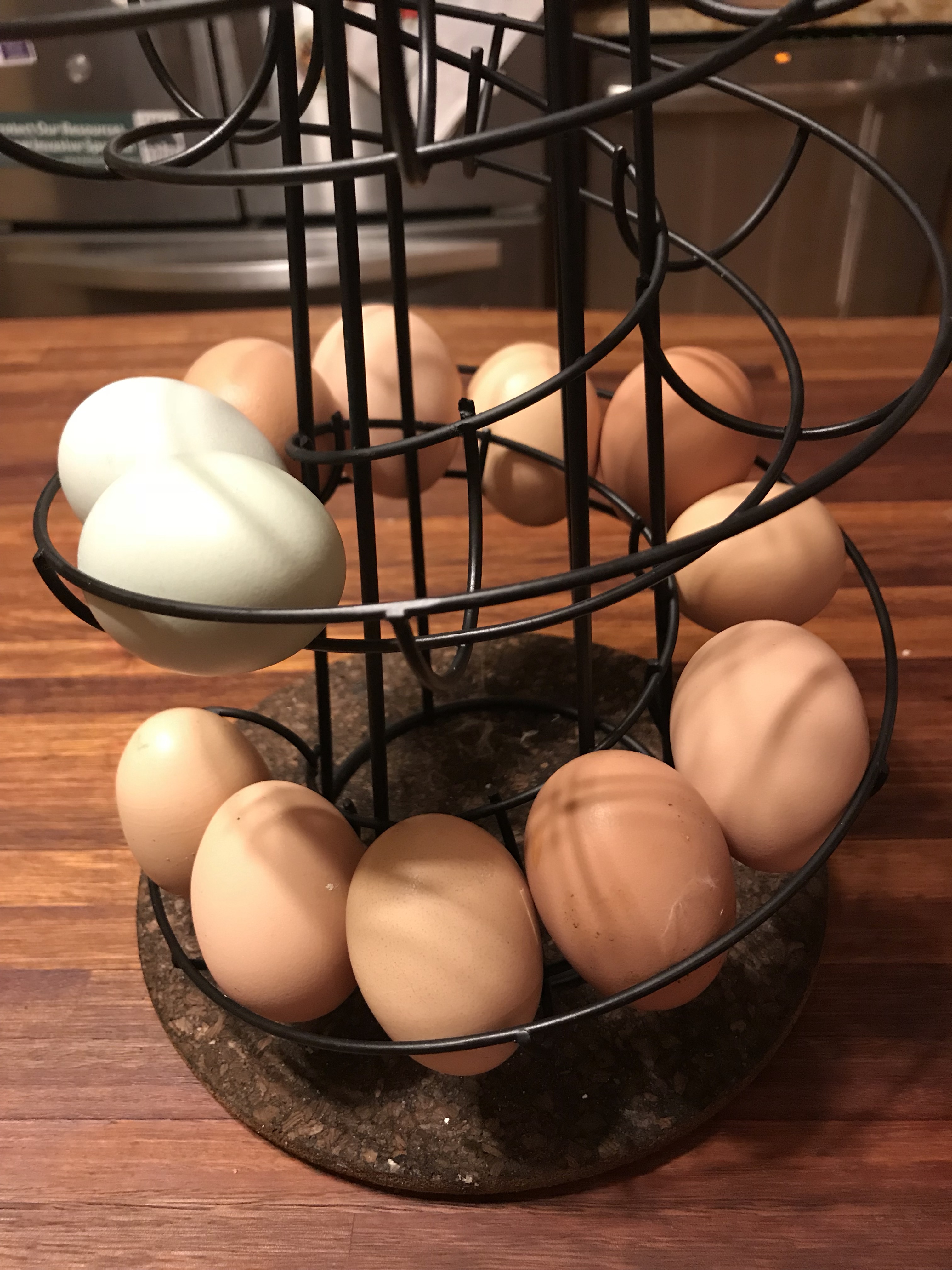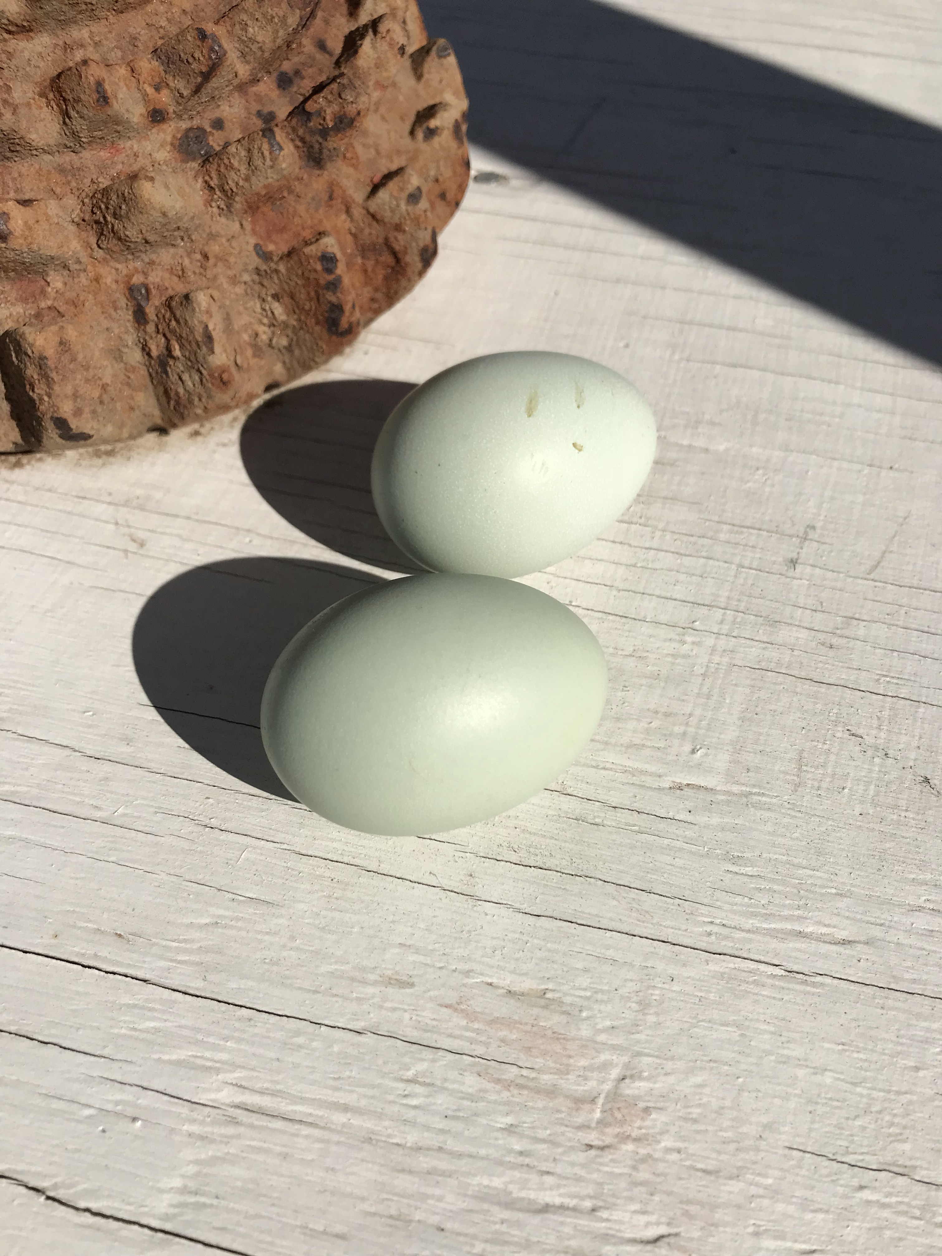 So when we bought chickens, I was adamant that we get some aracaunas because… well… Danger Bob really, but also because blue eggs. Well, Miss Violet has started getting rogered by the Roos, so we figured eggs weren’t far behind. And we were right! We found two when we were tricking out the coop today.