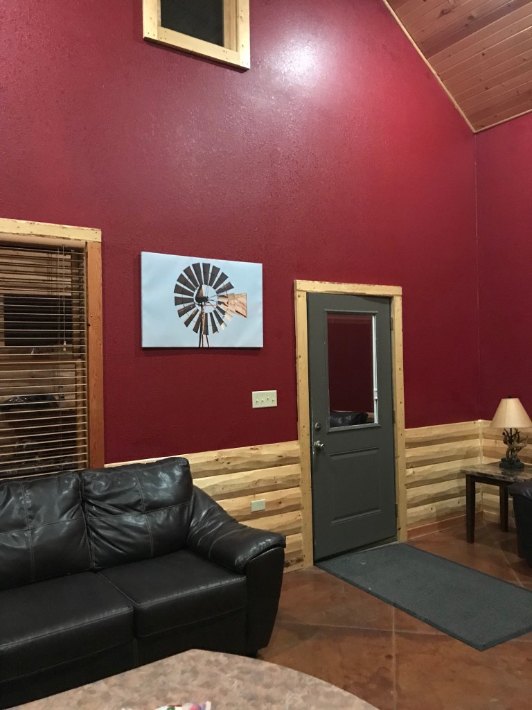 So we went on an adventure to celebrate my husband’s new job. I picked him up and we started with dinner in Lindsborg, Kansas. Little Sweden. We went to the The Swedish Crown for dinner, then drove along to Milford Lake, where we got to our cabin at The Acorns Resort. It was described as rustic. It is not. It has a full bath, a full kitchen and sleeps 8.