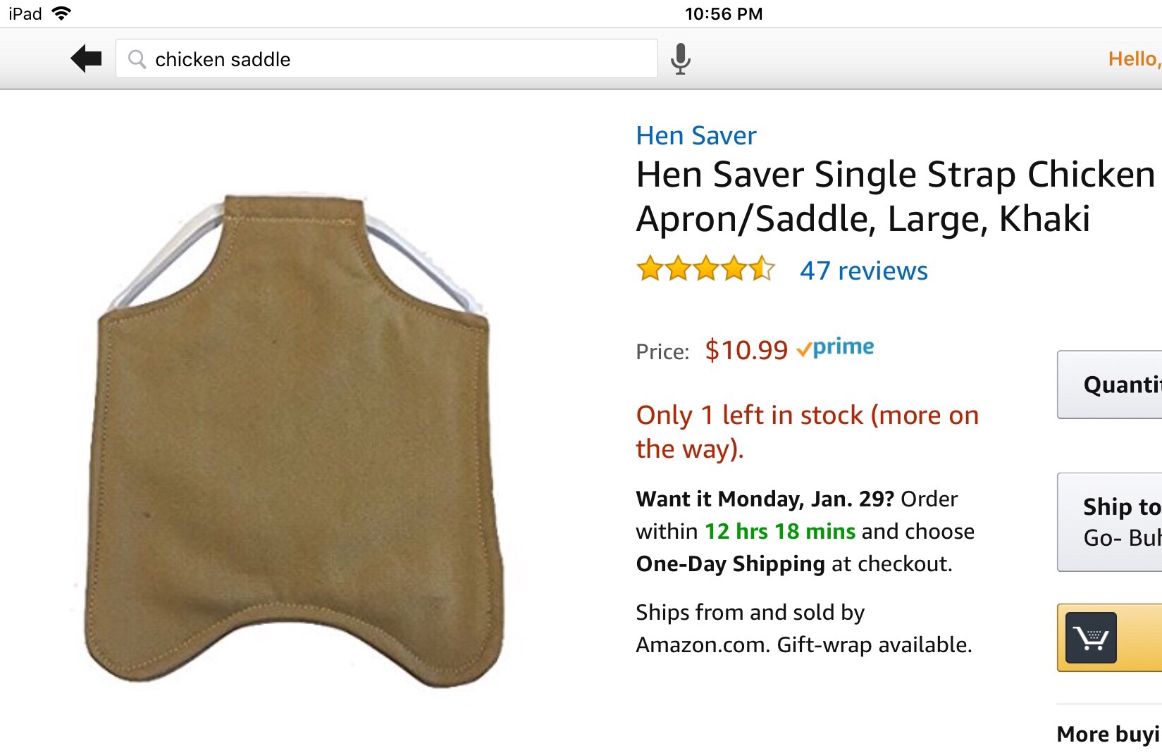 In other chicken news – we are going to have to buy or make a chicken saddle for a couple of our ladies. Buffy and Susan seem to be the favored ladies and they are being rubbed raw.