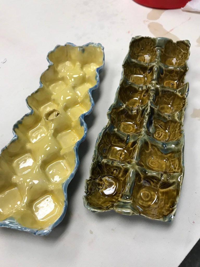 Egg holders. I rolled the clay out like dough and then molded it around an egg carton. I’ve got ideas about how to iterate this and make it better.