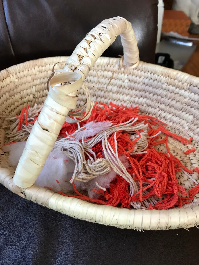 Then I put out nesting supplies for the birds. I got some cotton yarn on sale, and cut it into small pieces for them to use on the nests. I’m doling it out a bit at a time, but it seems popular with the locals.