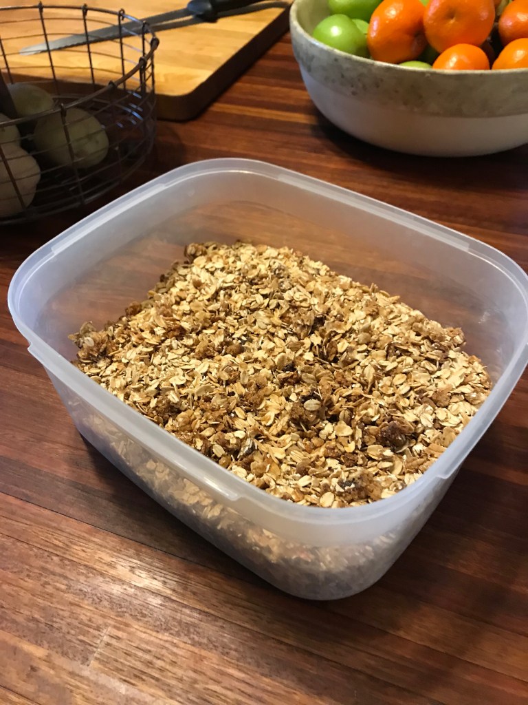 Now I’ve got two pounds of granola, and oats left over for the next batch.
