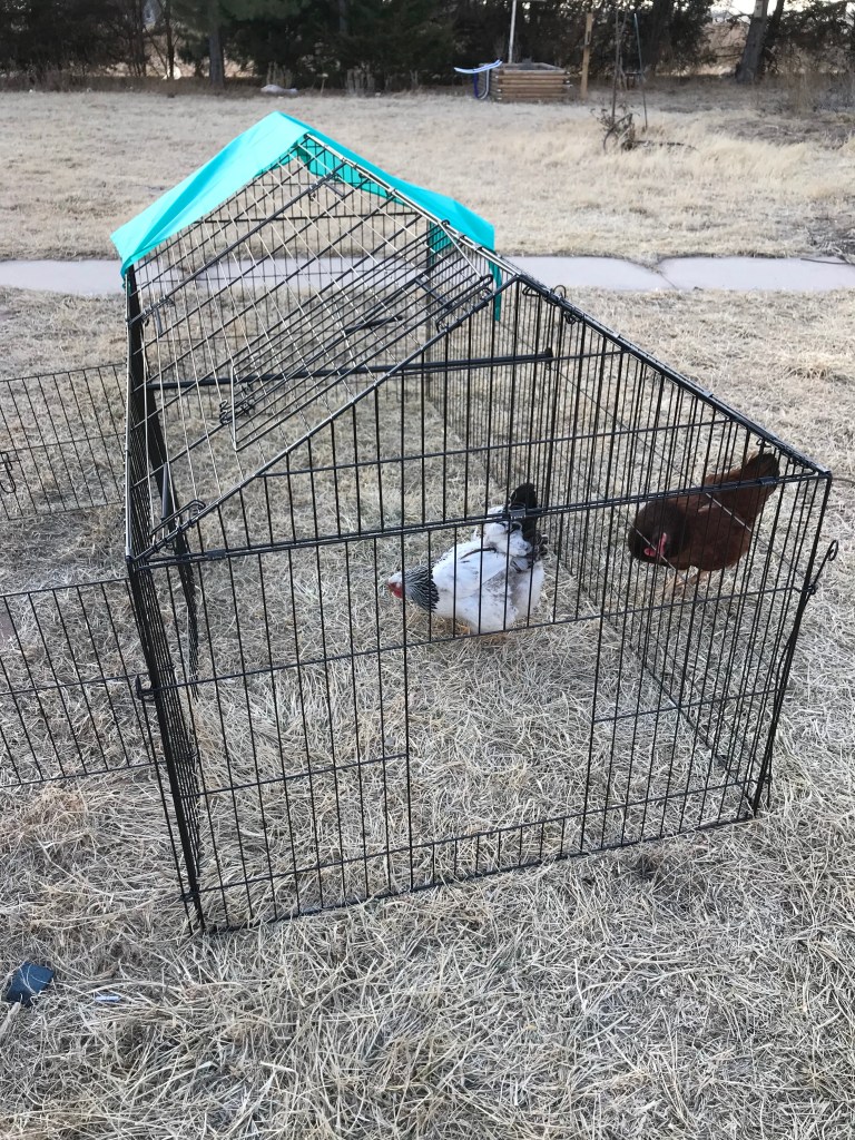 We’re going to make some modifications to it, like putting training wheels on it to make it mobile, and put a better tarp on it to make the end waterproof as well as a sun shade. But the chickens seem to like it.