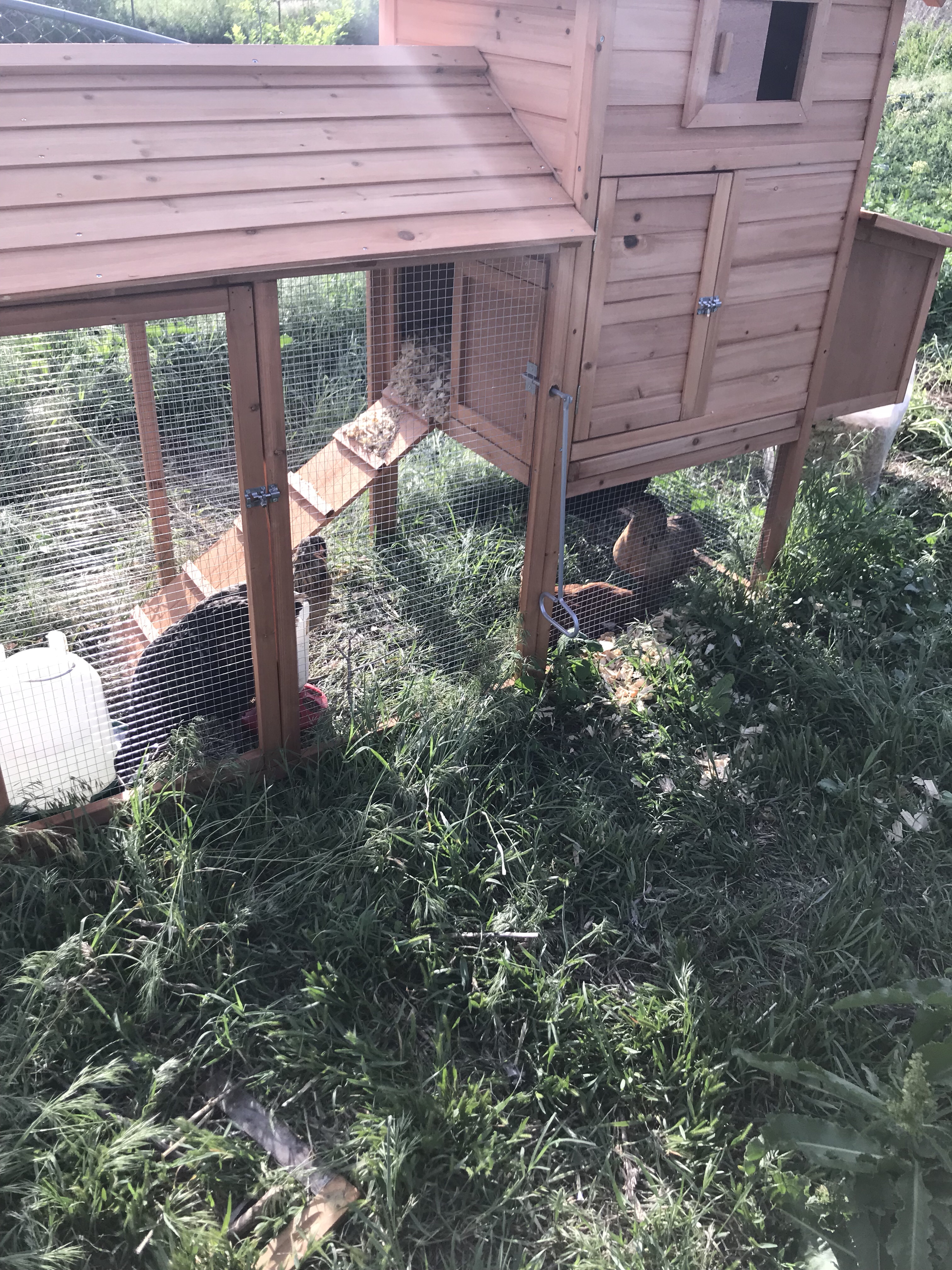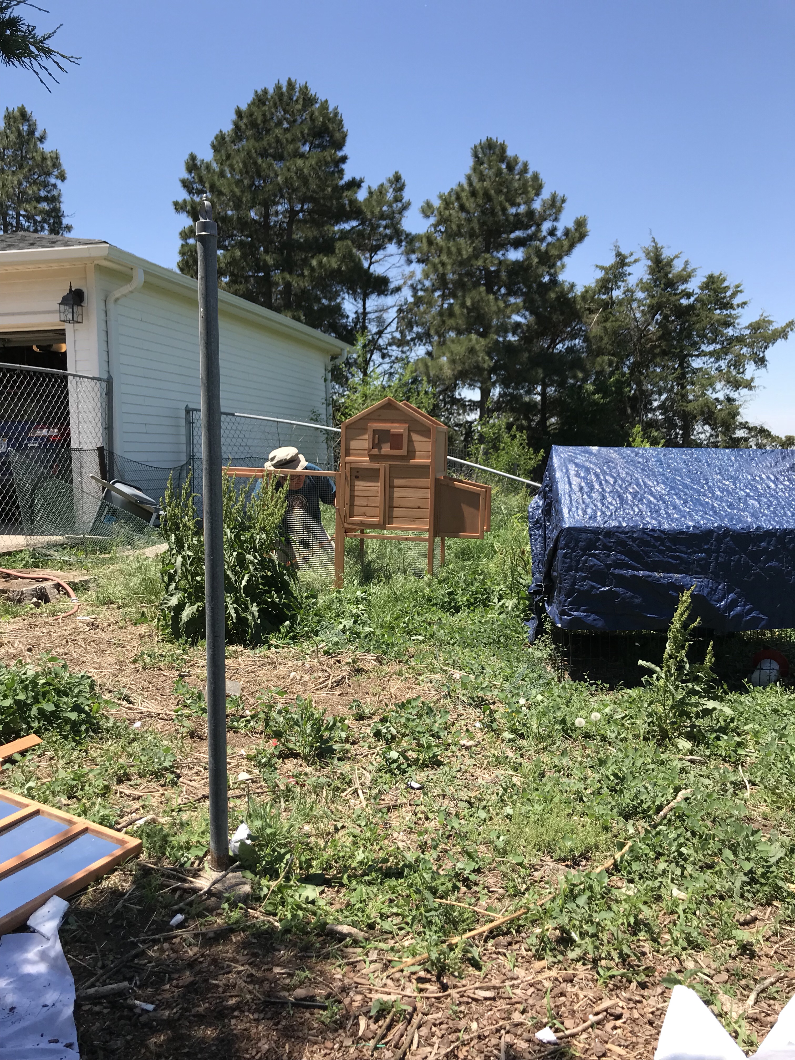 We realized we would need three chicken coops, and quick, so Amazon fairy to the rescue! We bought a prefab chicken house for our middle girls. The husband built it this afternoon