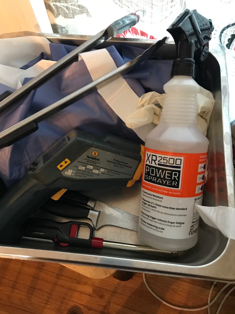 - Plastic aprons – especially because we didn’t know what we were doing.