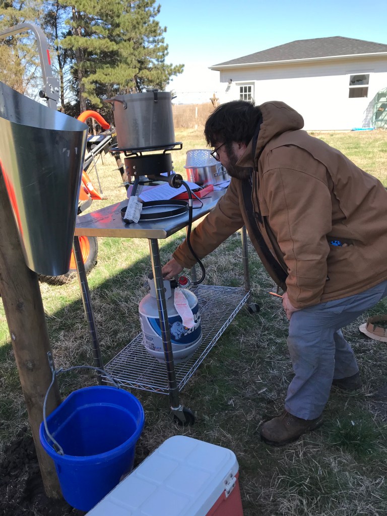 - Set water to boil, then let it cool to 140.