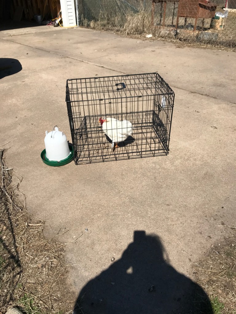 Our Banty rooster was getting beaten up, and the other rooster is the one we want to breed, so bye bye birdie.
