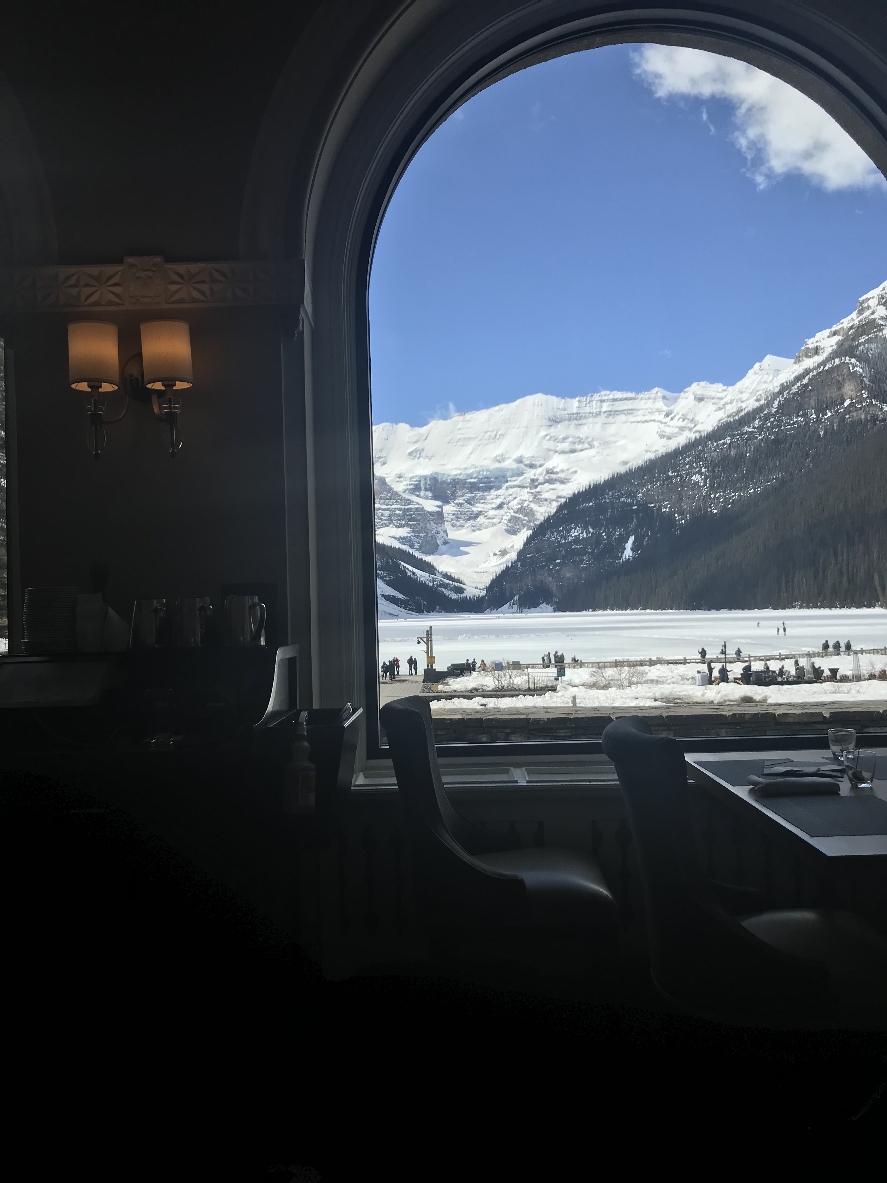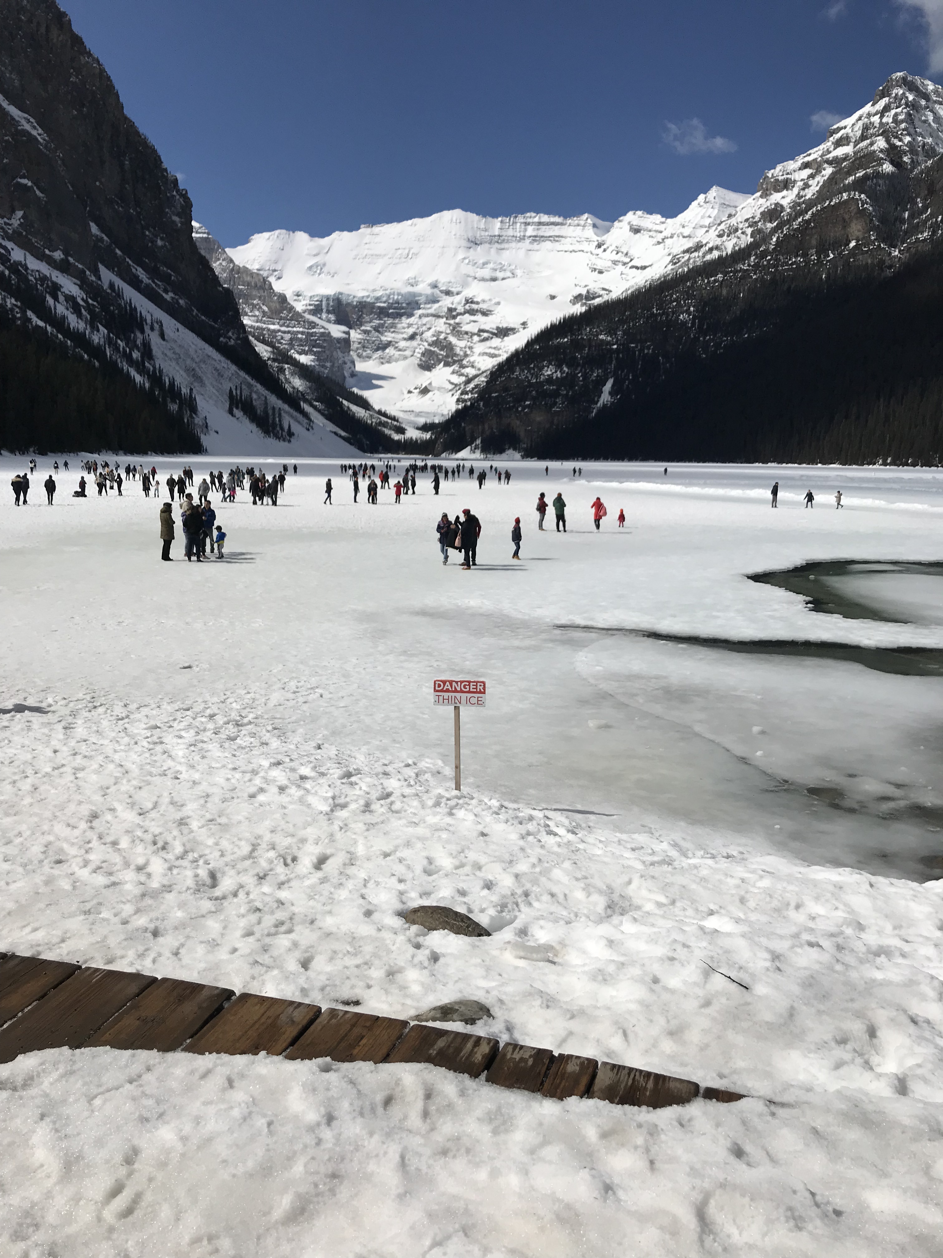 Not entirely sure what I was expecting, since it’s April in the great White North, but Lake Louise was frozen over.