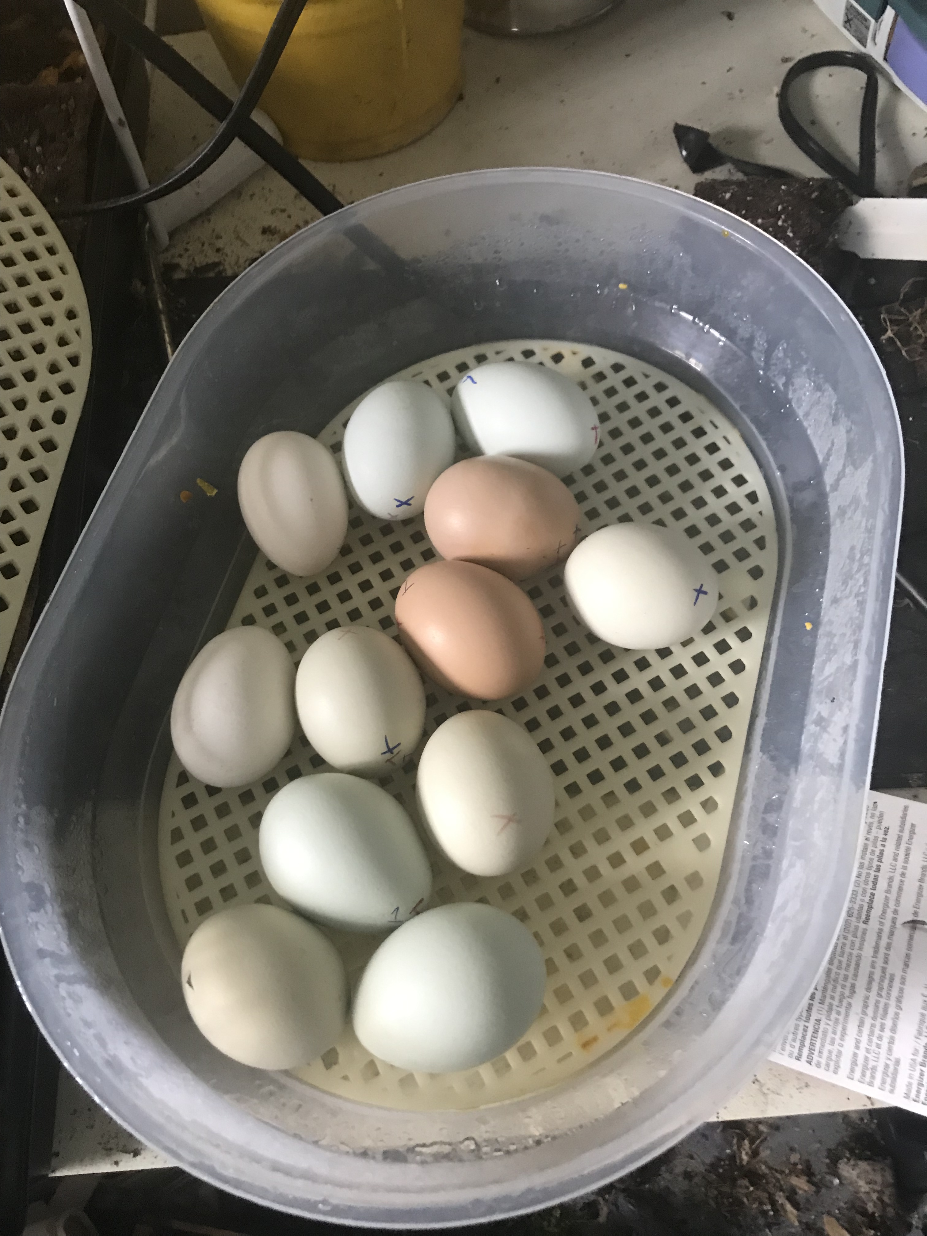 We started with 17 eggs, broke a few, culled some others, and are now left with twelve.