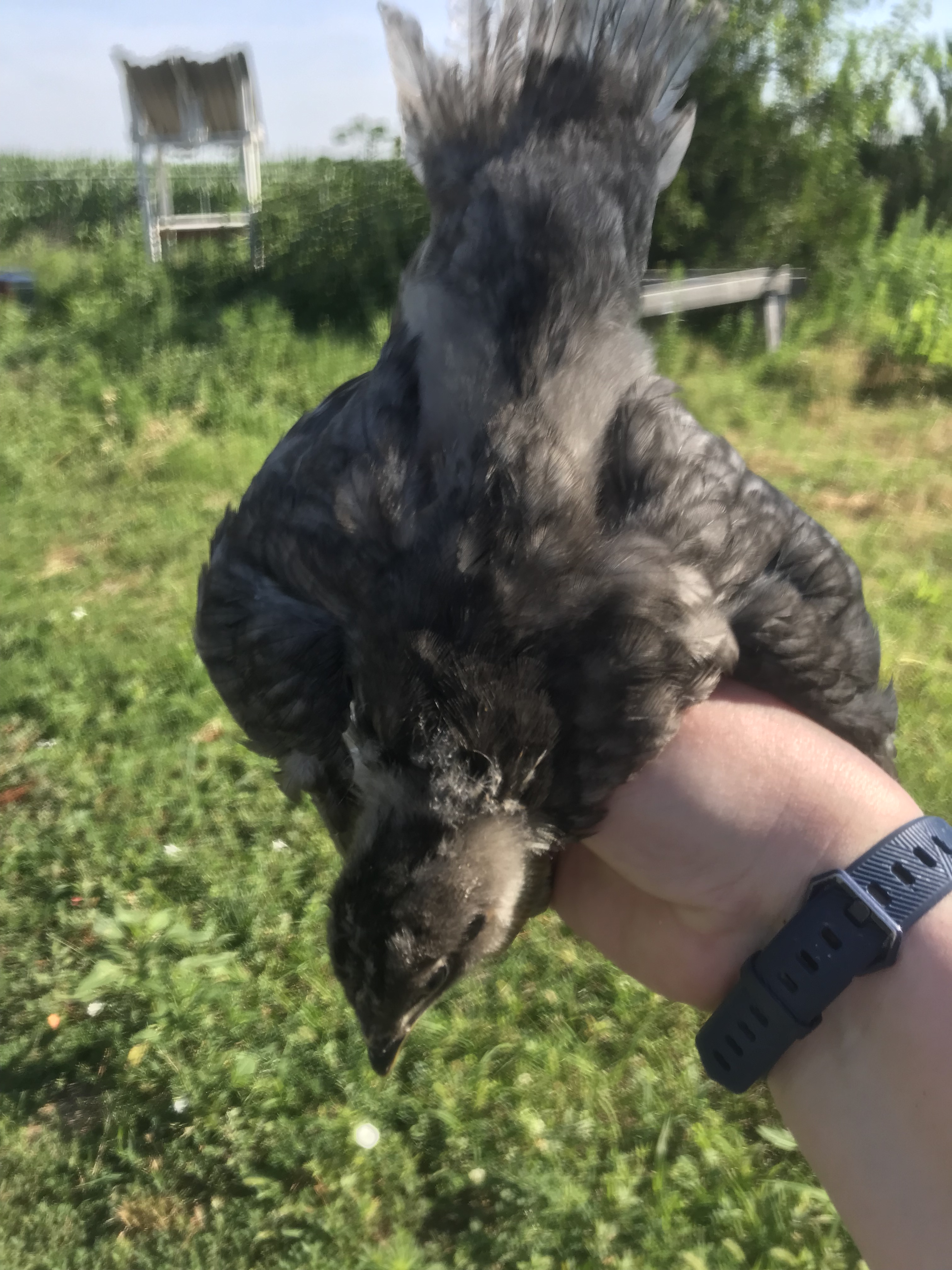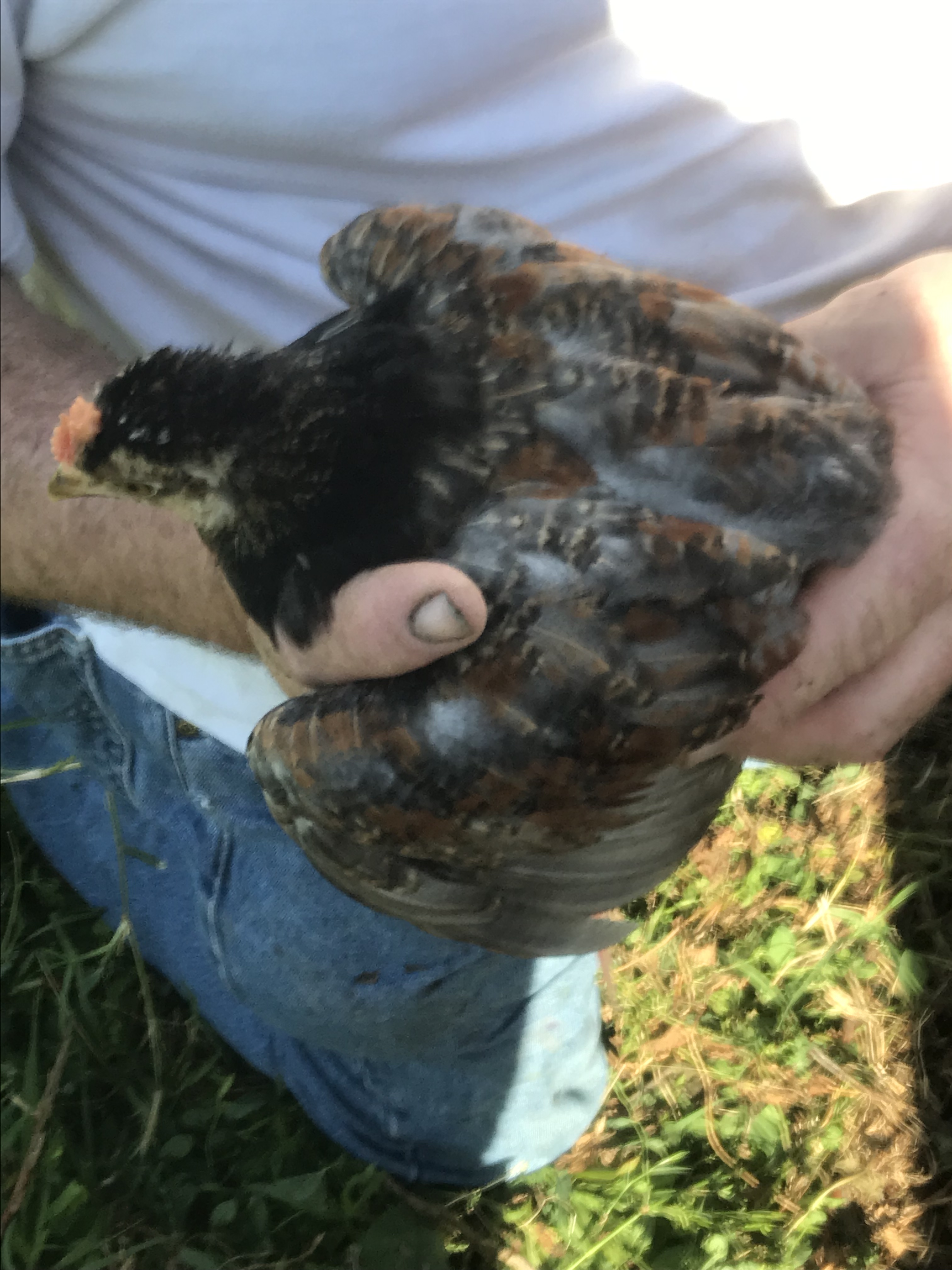 On the chicken front. We have had some predation- so we are down to four or five big ones, but we still have the 16 or so chicklets, we moved them to coops. It looks like four Roos and eight hens.
