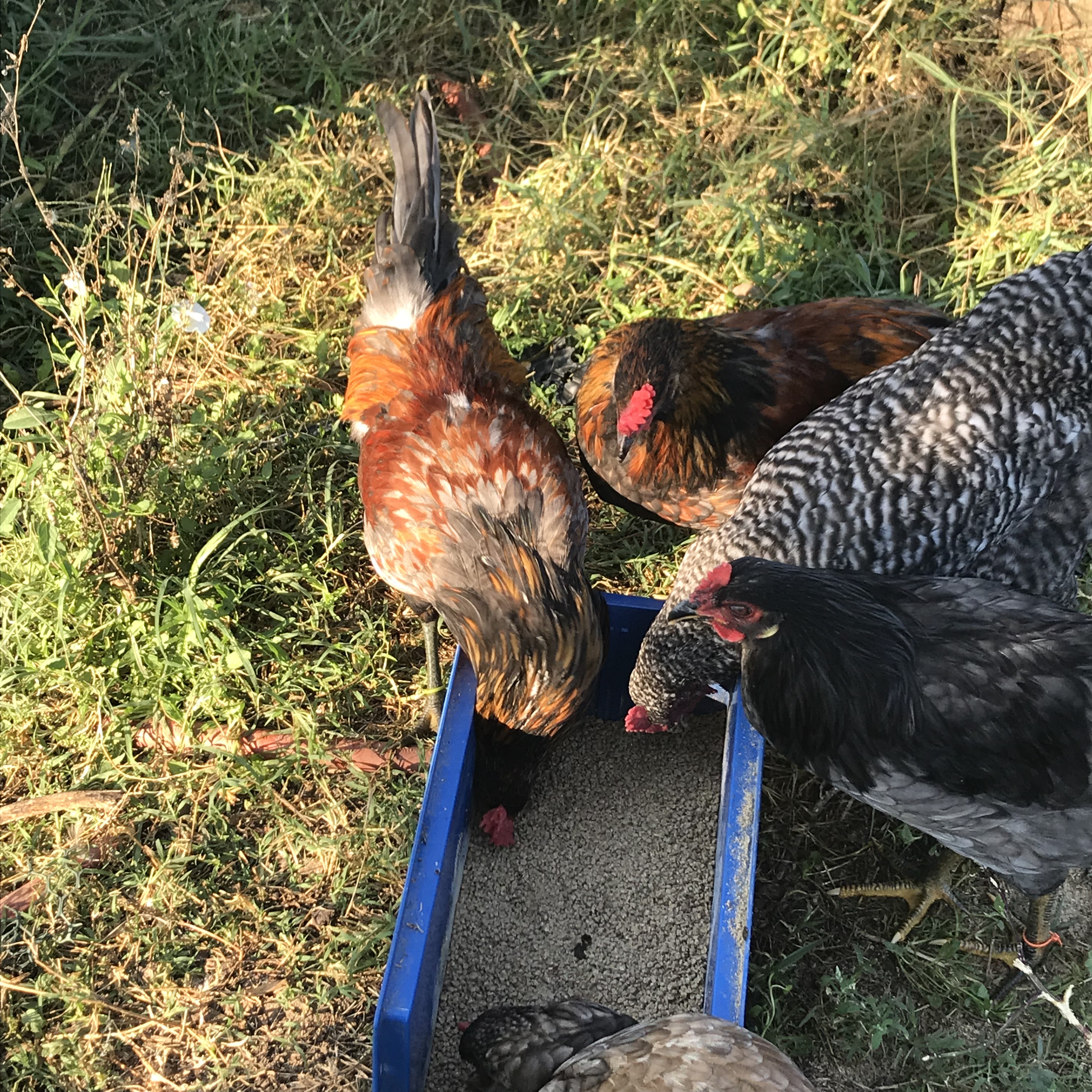 Here they are with the cuckoo maran roo who was supposed to be a hen, Coco Chanel, Blackie Onassis, and the AA Roos’ mom, Violet.