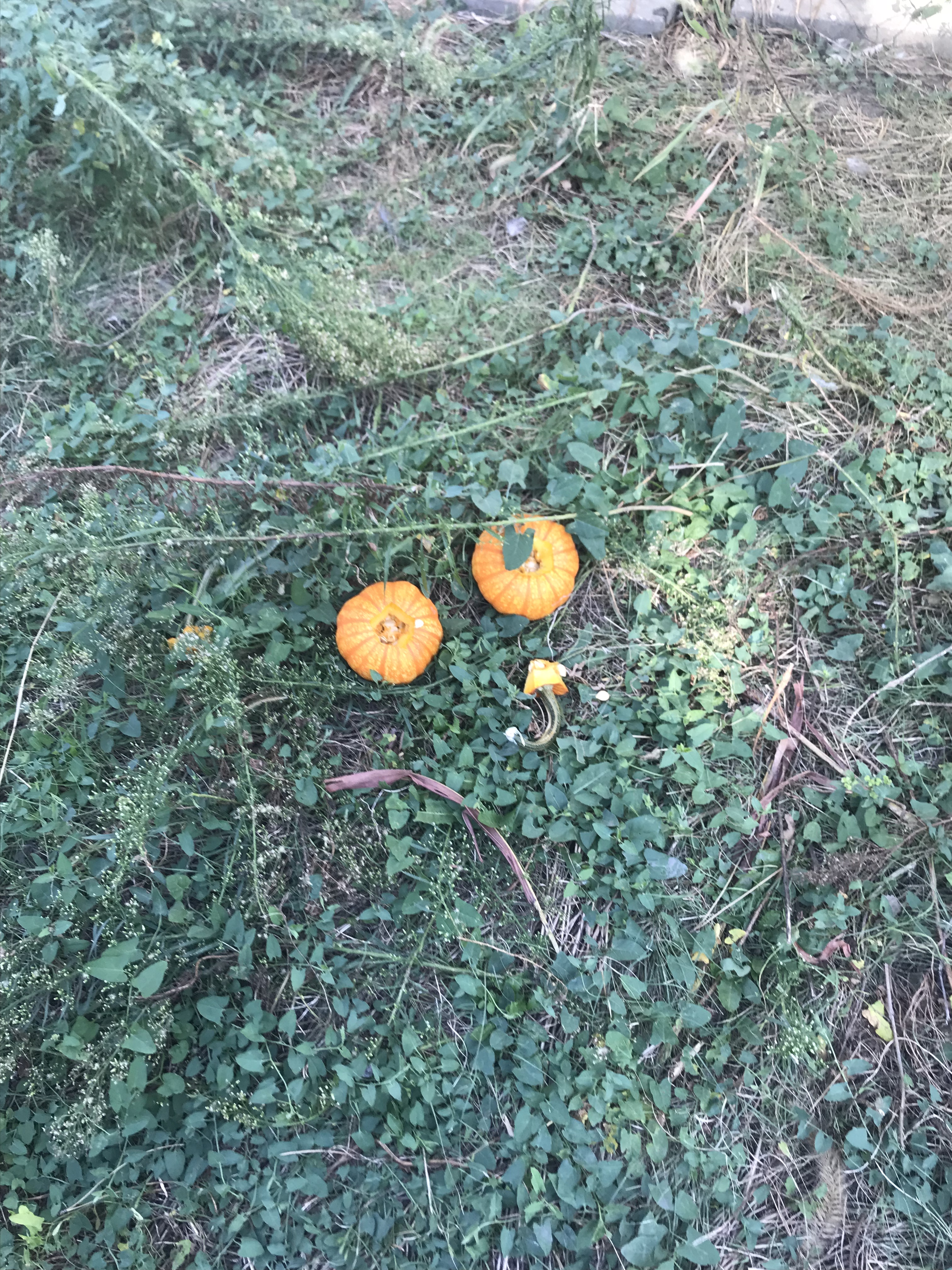 I also bought a couple of pumpkins, and put them where I’d be okay with a pumpkin patch happening. Mainly for the chickens to eat, but if we get pumpkins, then so be it.