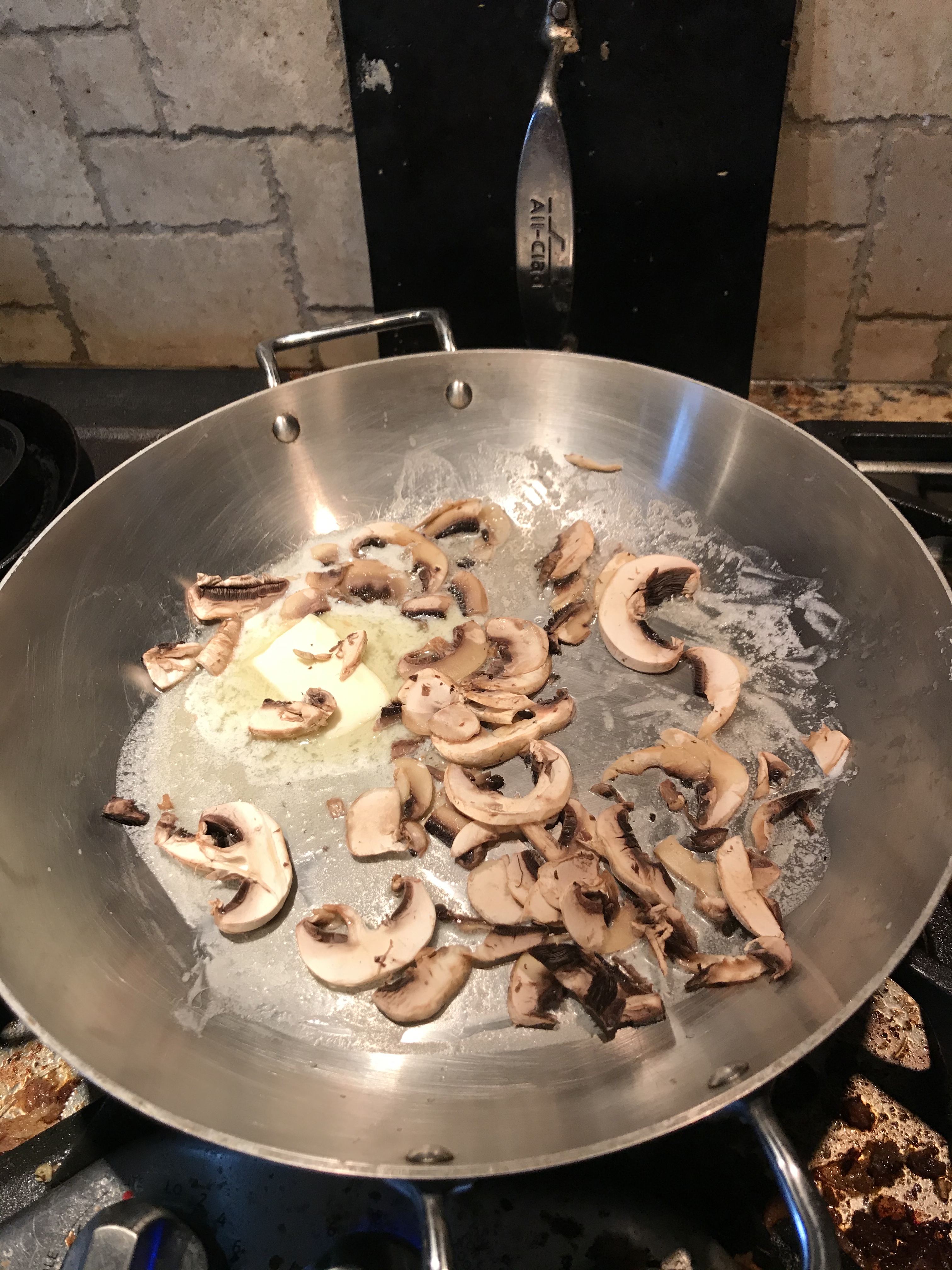 So cut up and brown the mushrooms. I obviously had todo it in batches, so when the bottom of the pan got a bit dark, I just deglazed with some of the sherry.