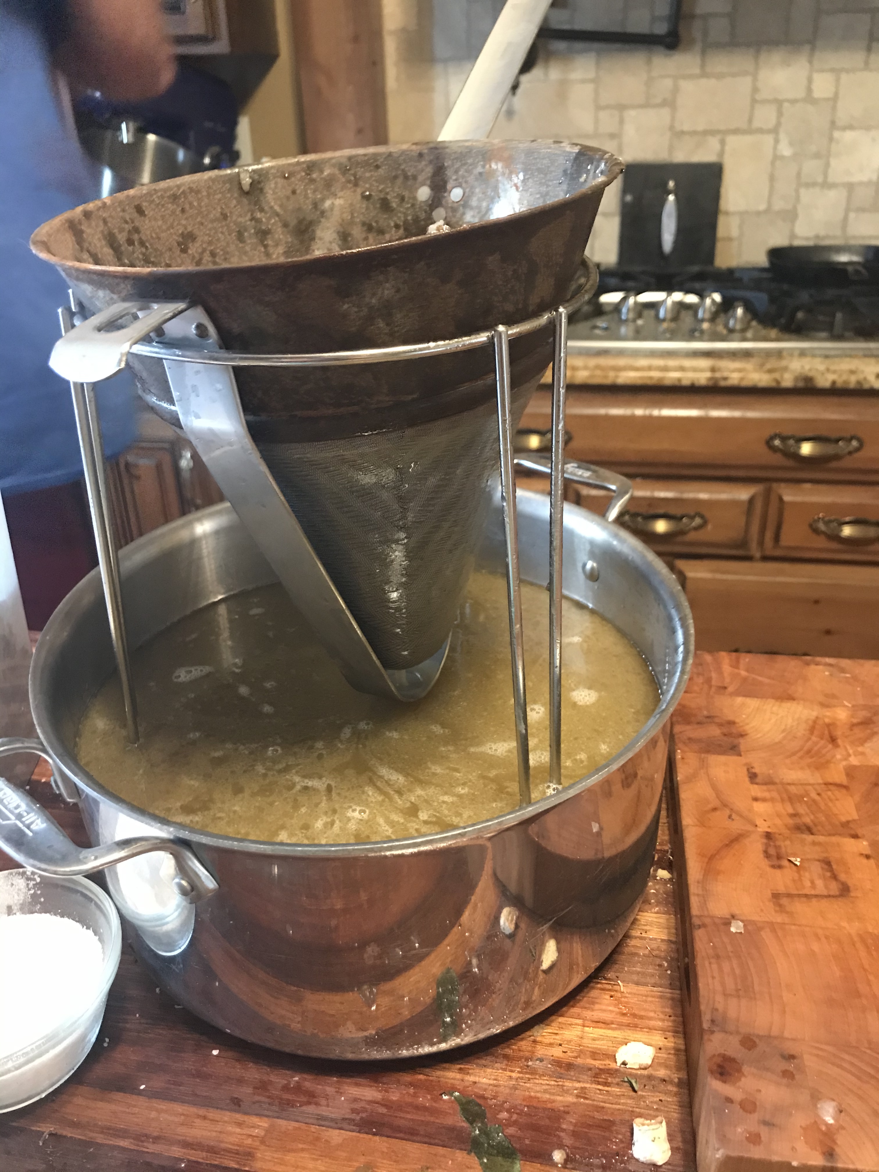Let it cool a bit and then strain through a chinois.