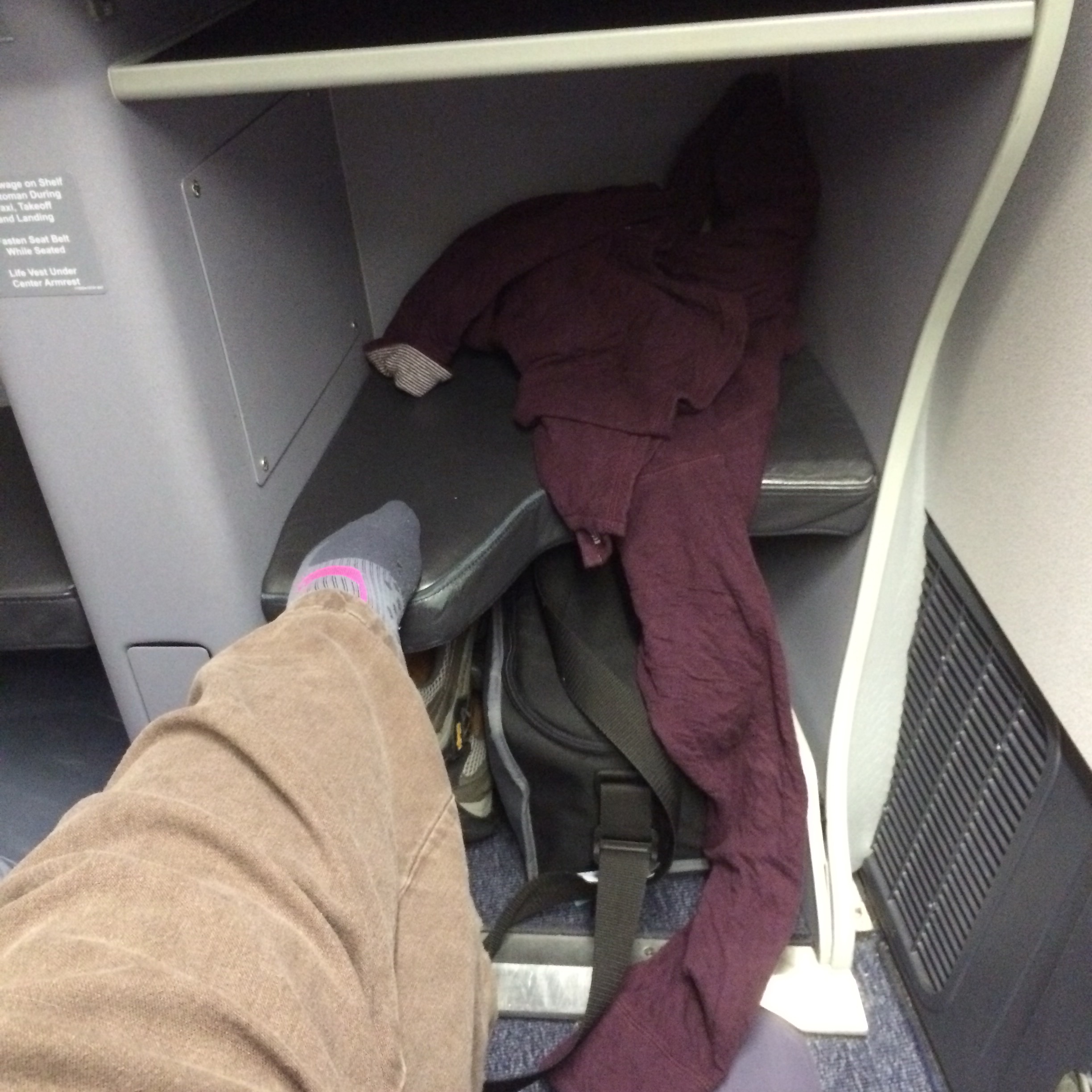 The perils of being short. My feet didn’t reach the foot rest in business class. #ohthehumanity