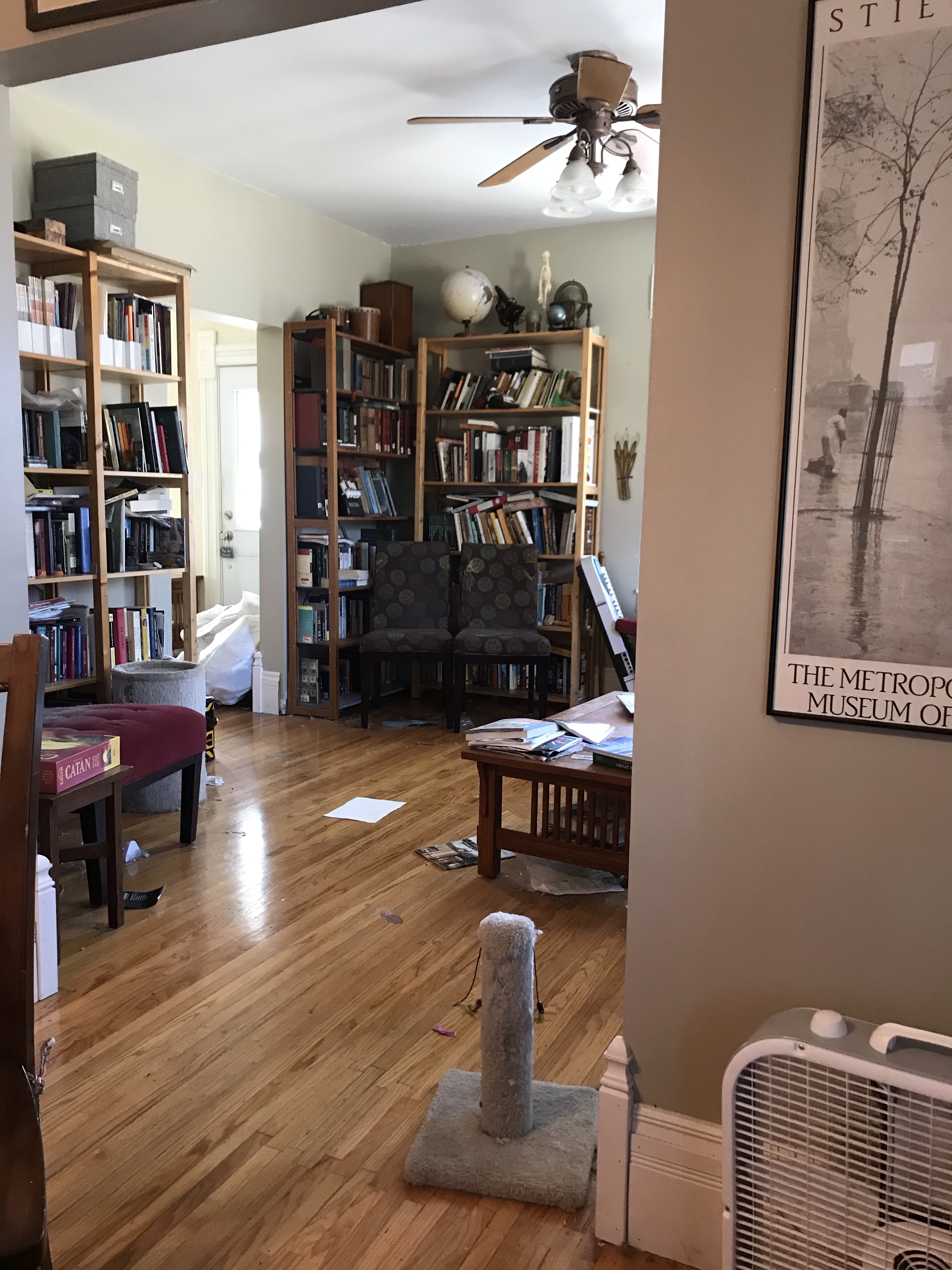 We realized that since we don’t have a TV per se (iPads suffice for us) we don’t need a focal point in the living room. Since all of the walls are already books, we decided to make it a library.
