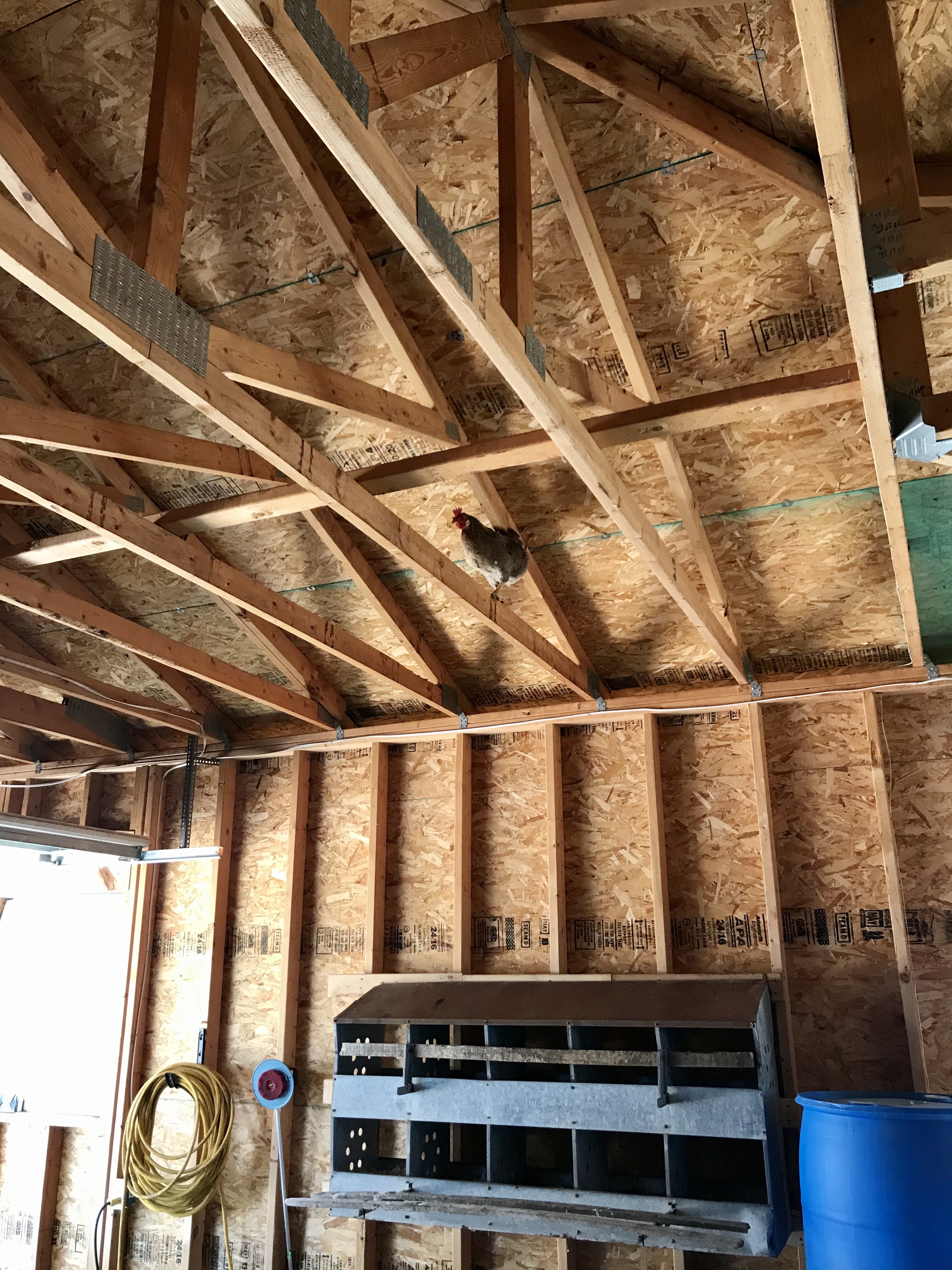 So I come home, and hear chickens. No biggie, used to it. Bring in the groceries and then go out to gather eggs. Still hearing the chickens, so I figure someone is in a nesting box. Nope.