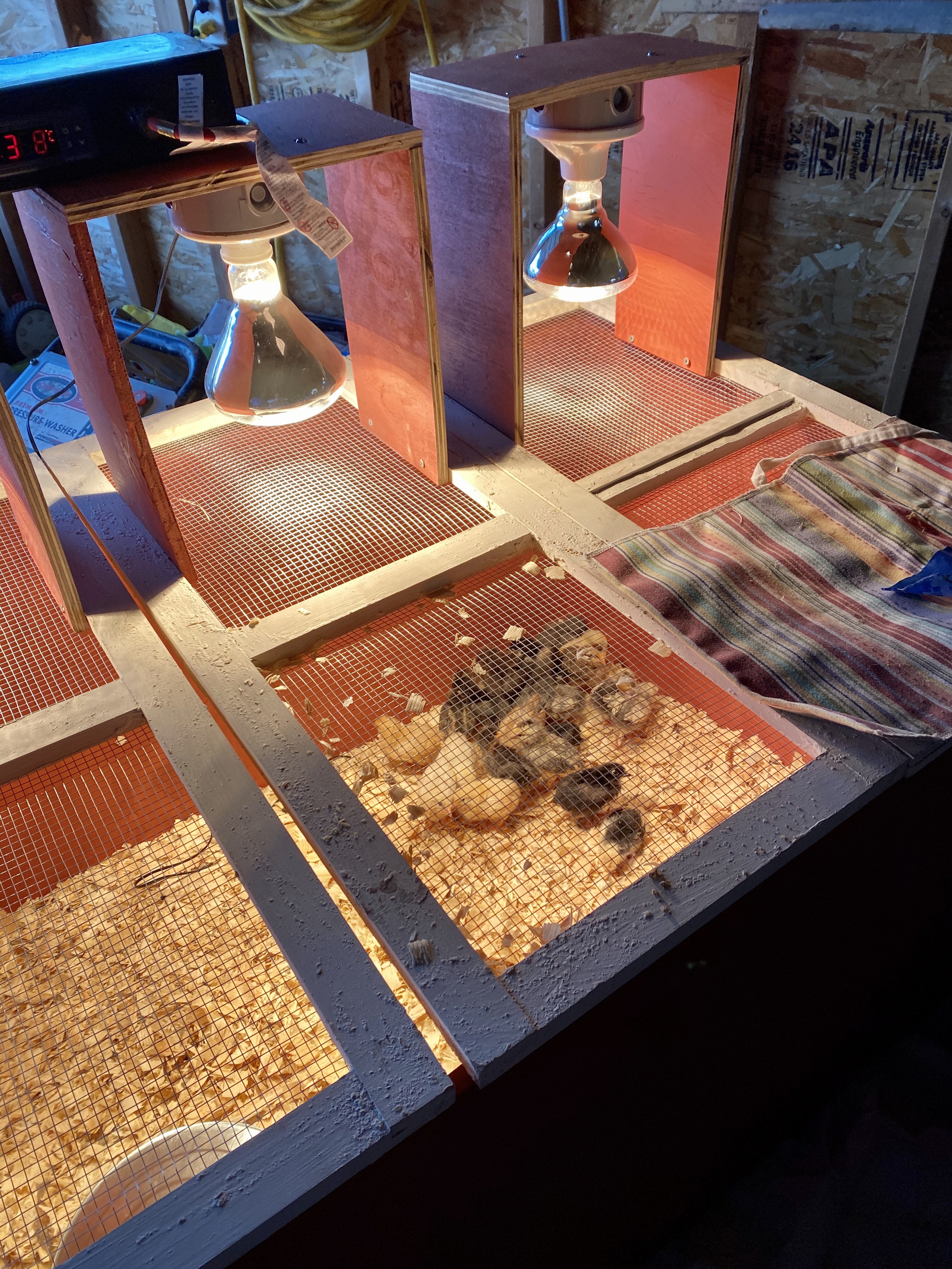 Brooding in our Quonset hut.