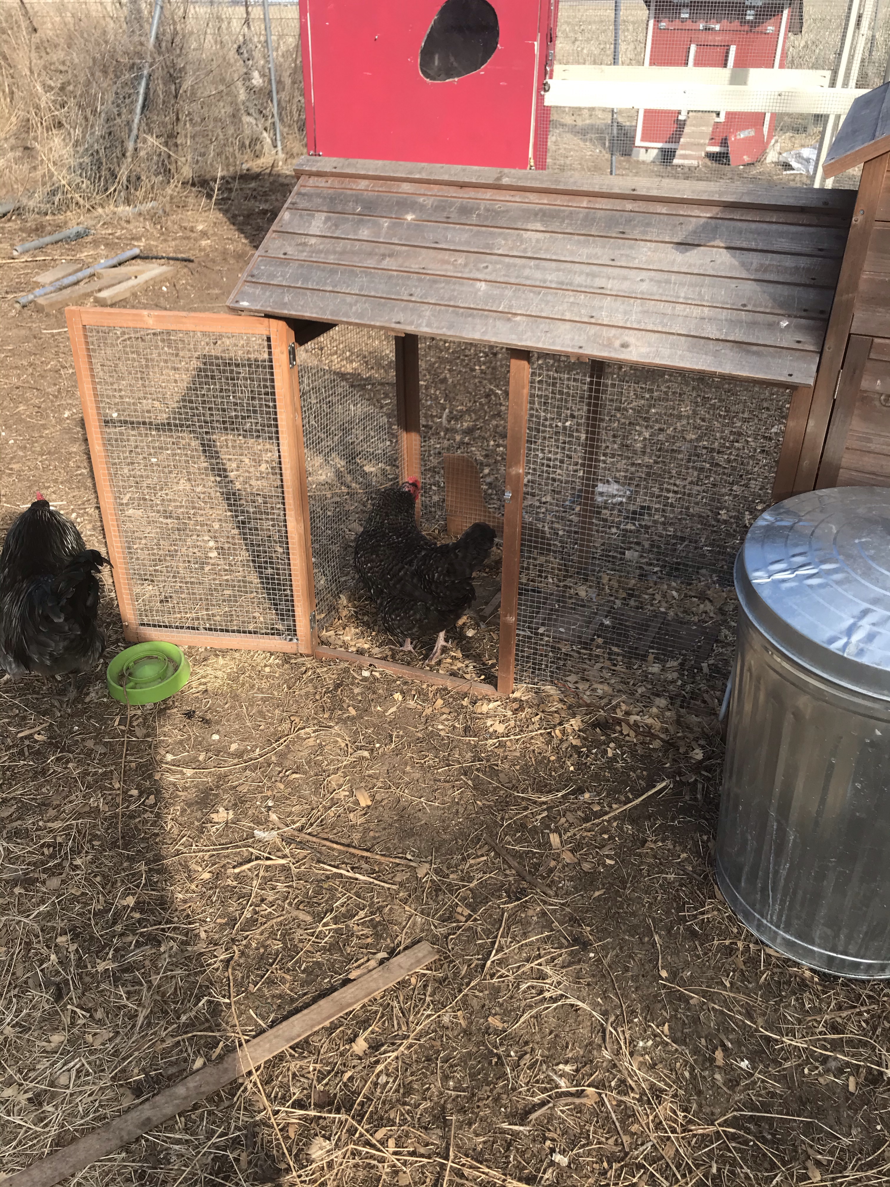 And this one that we bought and assembled. For 20-ish chickens who free range, that’s enough.