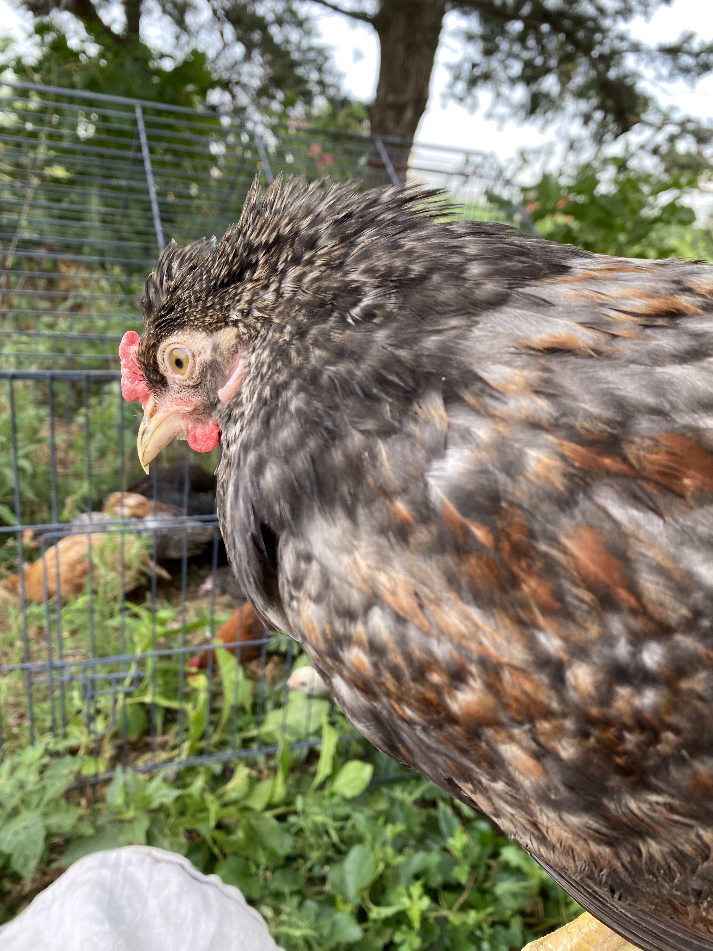 Carrie hid while I found the hook the first time. The second time she was hanging around the brooder. I put out treats to try to get her to stand still, but at some point she just gave up and let me get her.