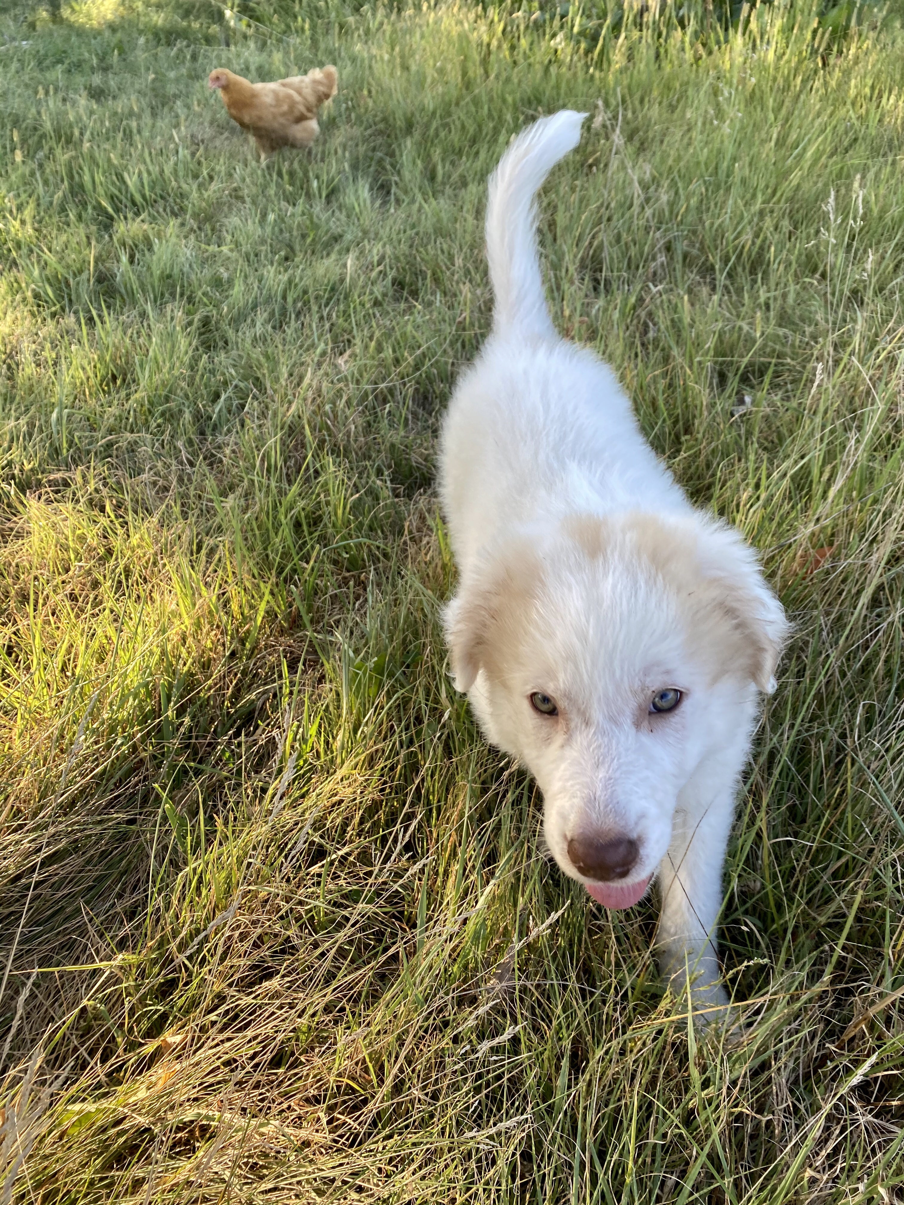 He’s so dang cute. We are going to have to get obedience classes for him though. Although we are encouraged that he doesn’t try to eat Buffy the chicken who likes to hang around.