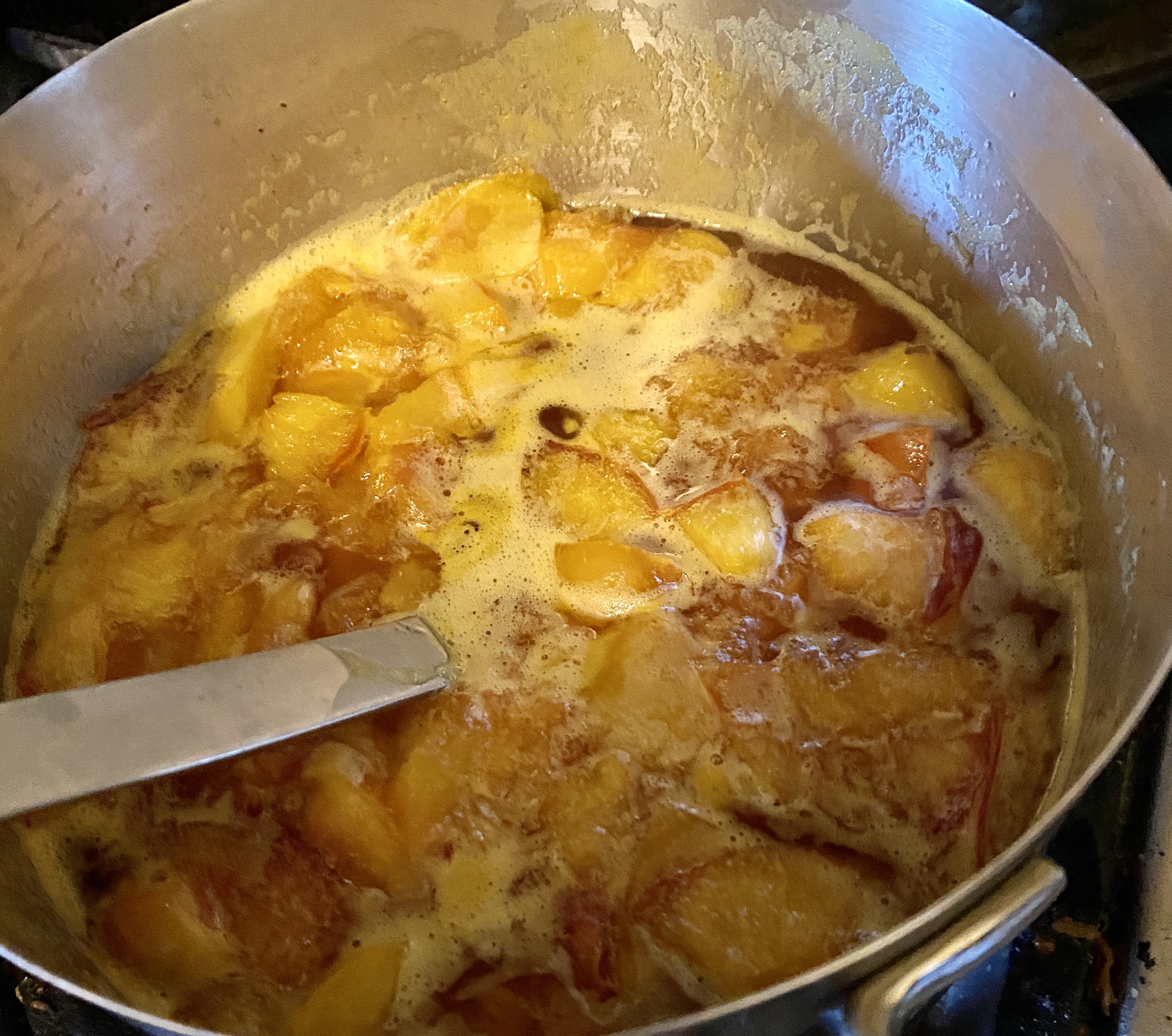 I had maybe three pounds-ish. My scale wouldn’t weigh it. Added around 2 cups of sugar and a third of a cup of lemon juice. A nice pour of my homemade vanilla — how is it that I haven’t done a post on homemade vanilla? — if you’re not a vanilla person, you could add other spices, or just have the nectarines.