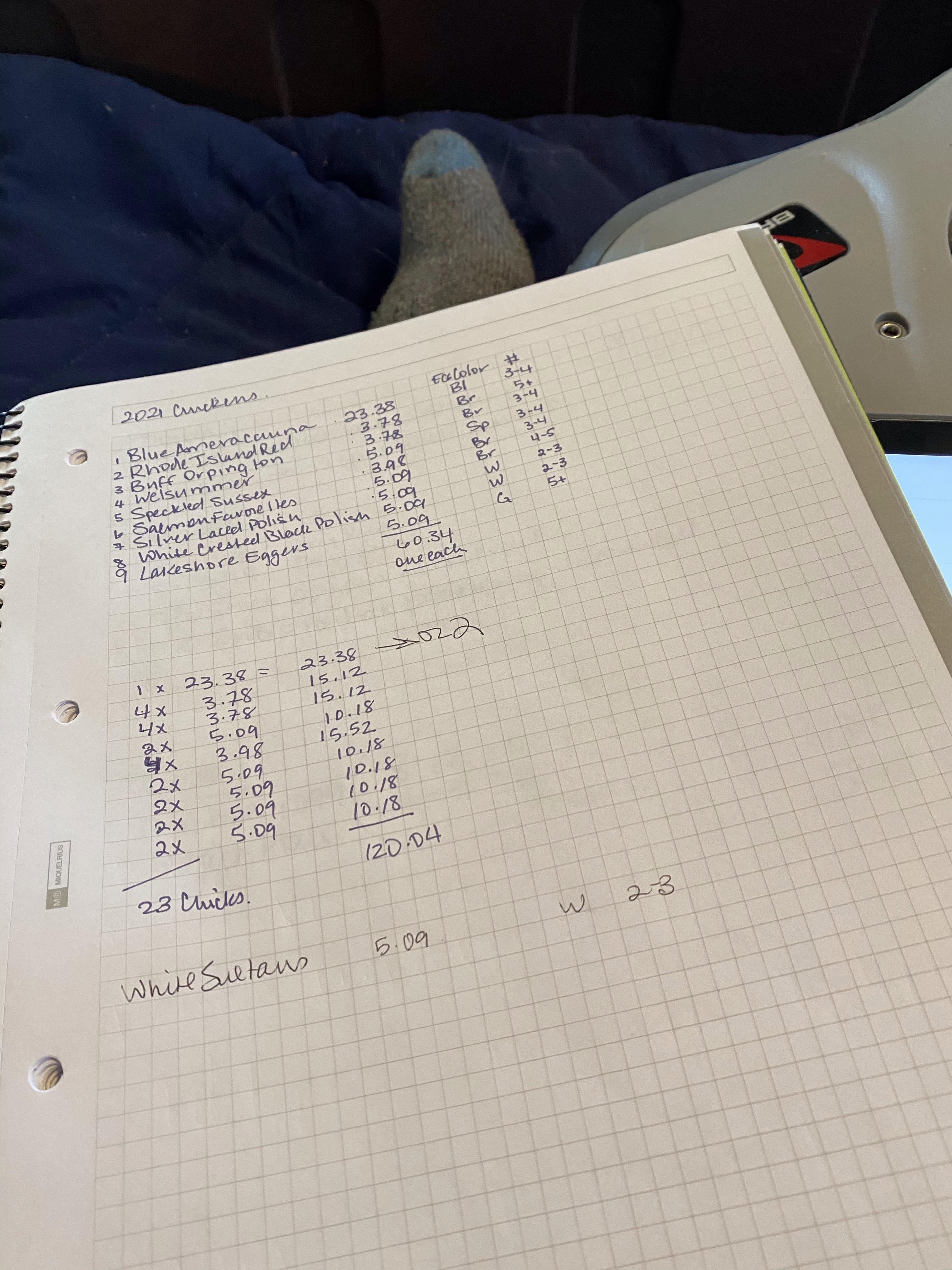 Only one or two of the expensive ones. Because our blue egg contingent is depleted and/or diluted. We are getting some Rhode Island Reds and Buffys. We liked our speckled eggs from the Welsummers so a couple of those.
