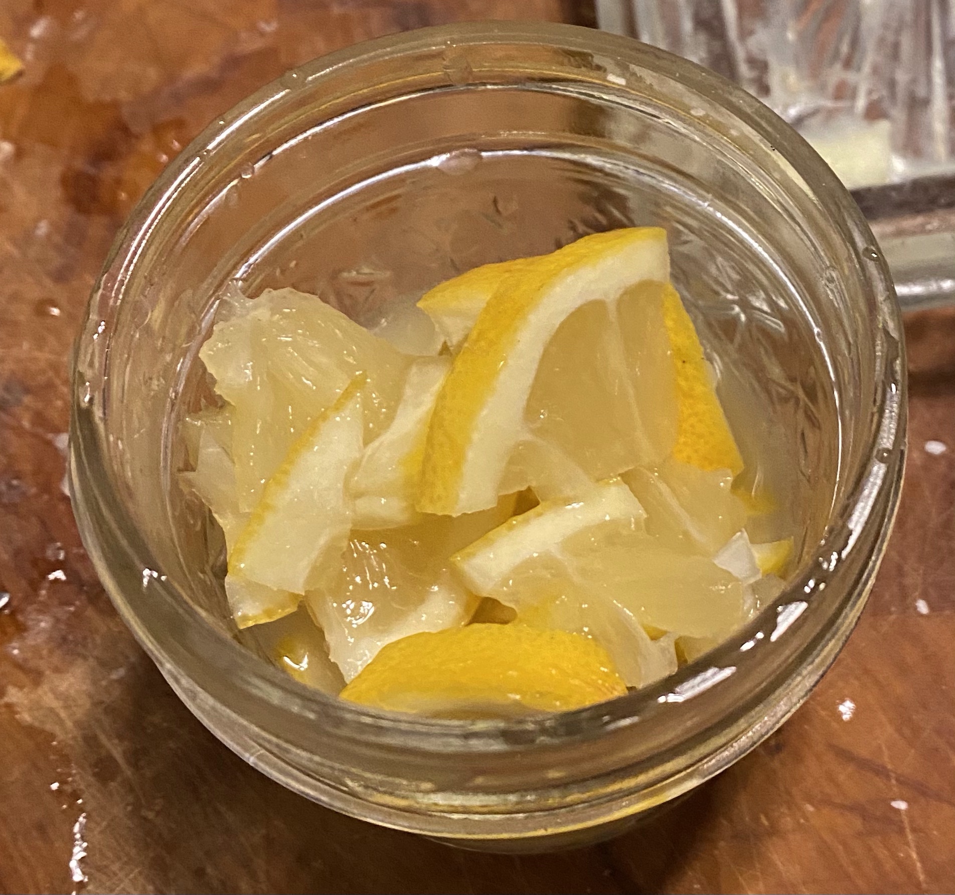 That way I can get exactly the amount that I need. Layer the lemons in and salt between layers. Top off with juice. Set the jar in a cool, dark place for a couple of days, turning over occasionally, then refrigerate. The longer you wait, the better the flavor.