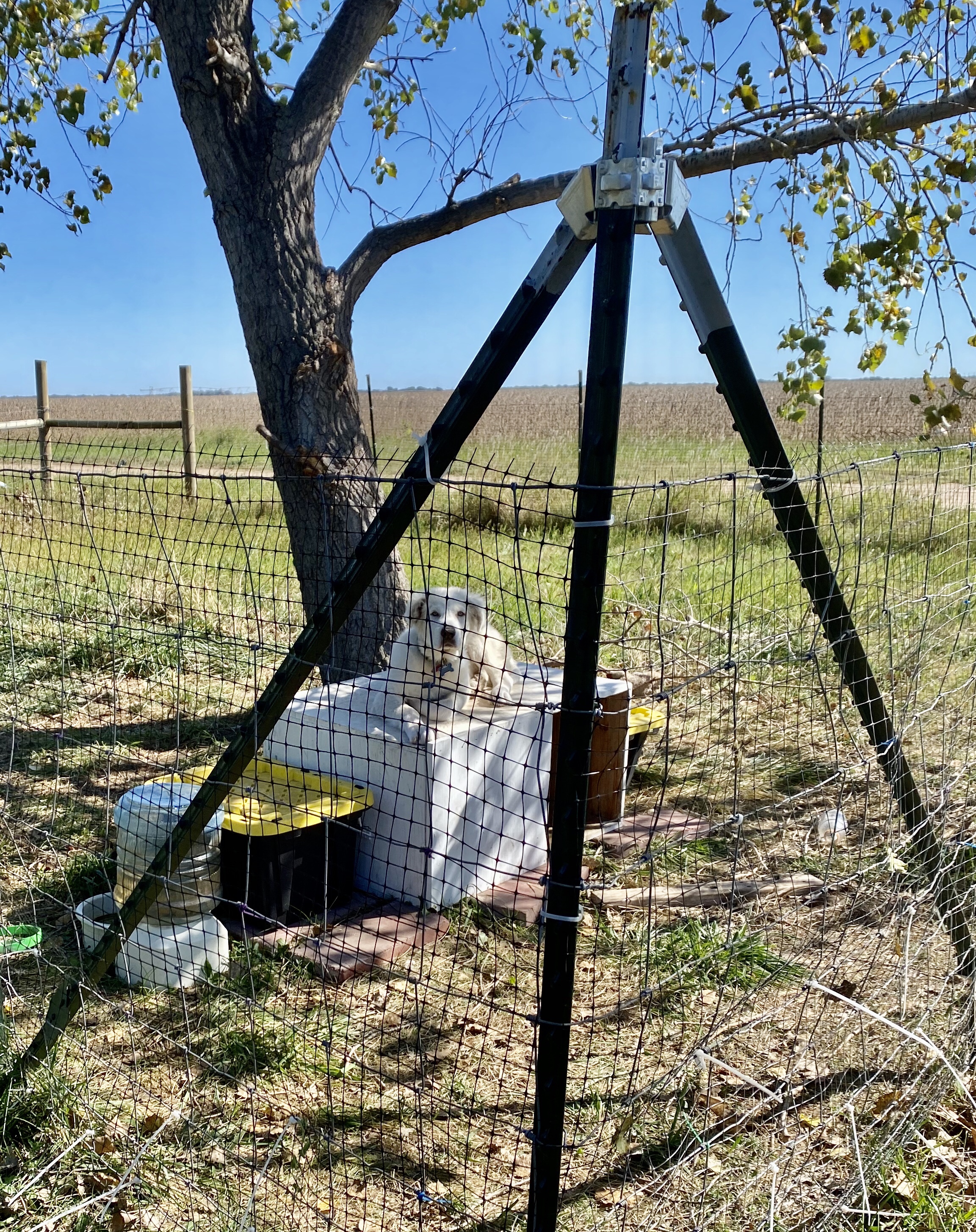 We have part of the fence up (the red), including a drive-in gate. We need to finish the yellow part, including a walk-in gate. Ultimately it will have the chickens, goats, dogs, and any other livestock we acquire. I’m bucking for a lamb or ewe once we have our goats settled.