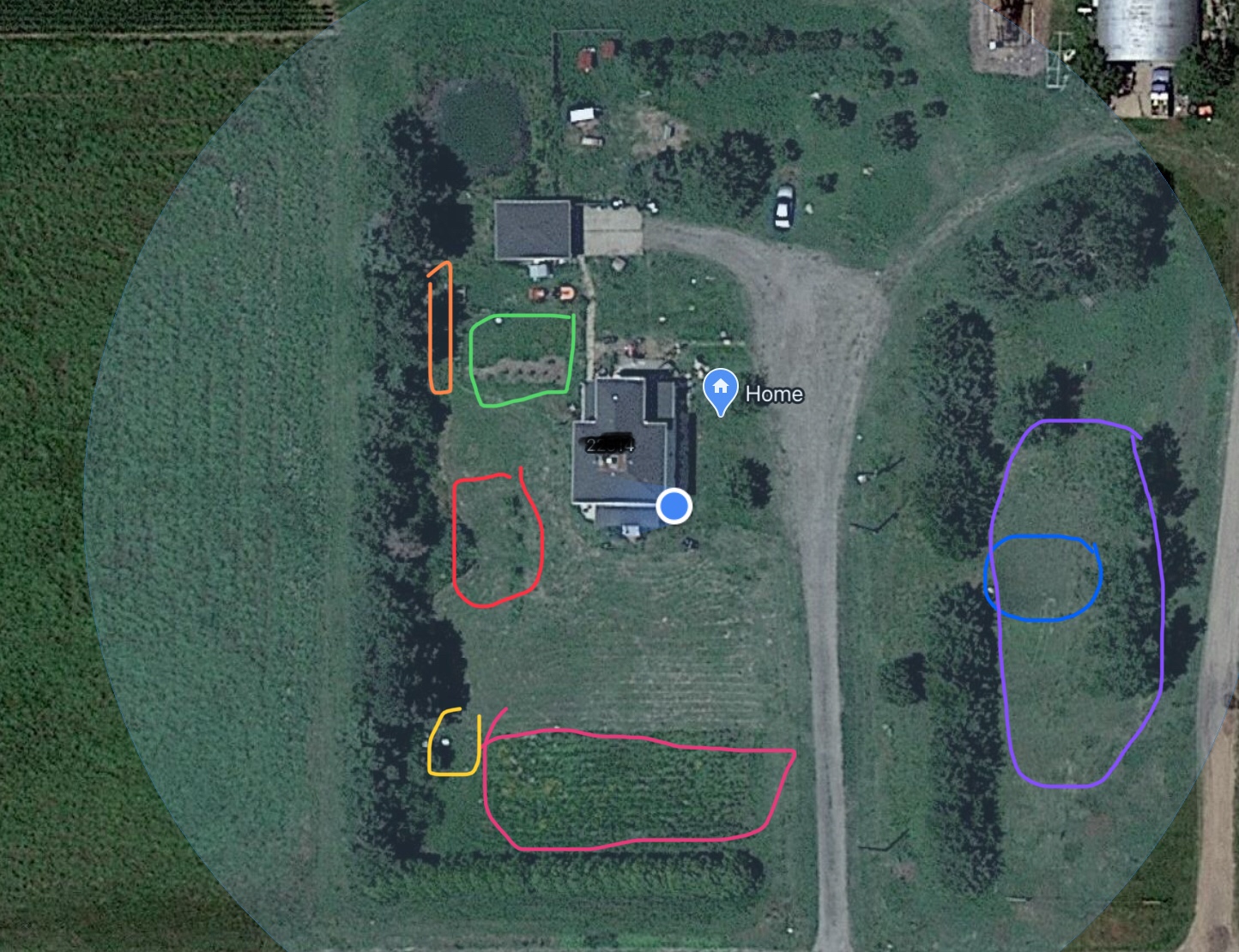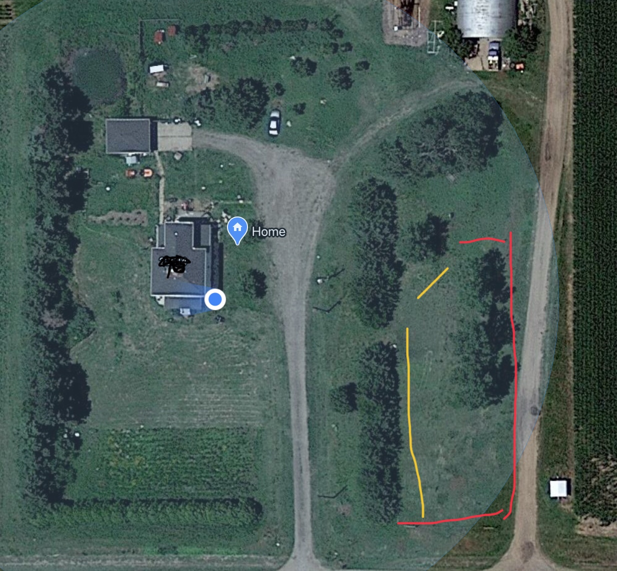 So what is the layout? We only** have 3 acres. Property ends to the west more or less at the tree line.