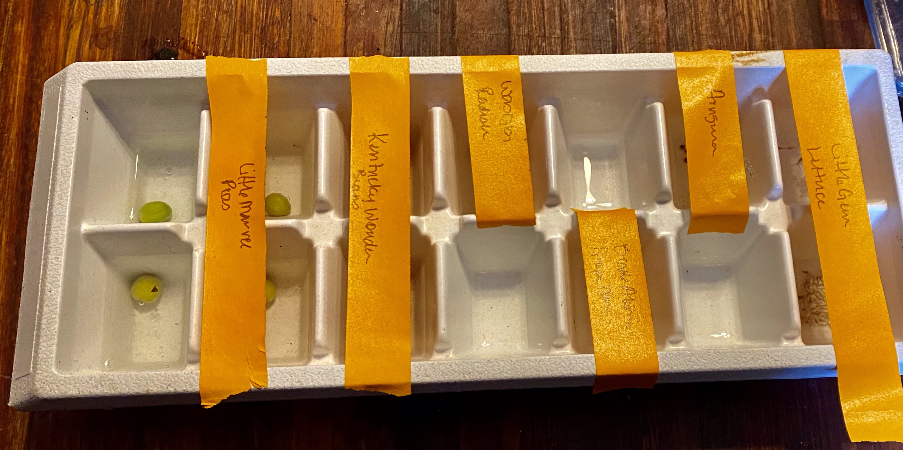 I chose my seeds, I tried peas, beans, tomatoes, arugula, radishes, and lettuce. The first step is to soak the seeds in water for at least three hours.