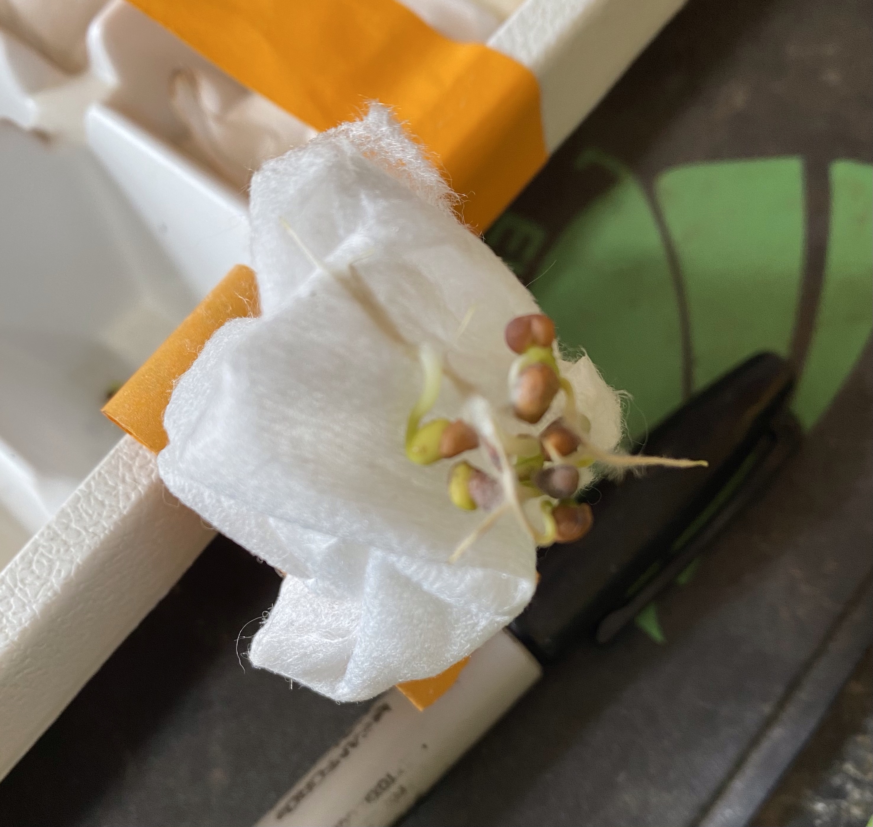 Once the seeds were soaked, I put them in damp gauze. To let them germinate.
