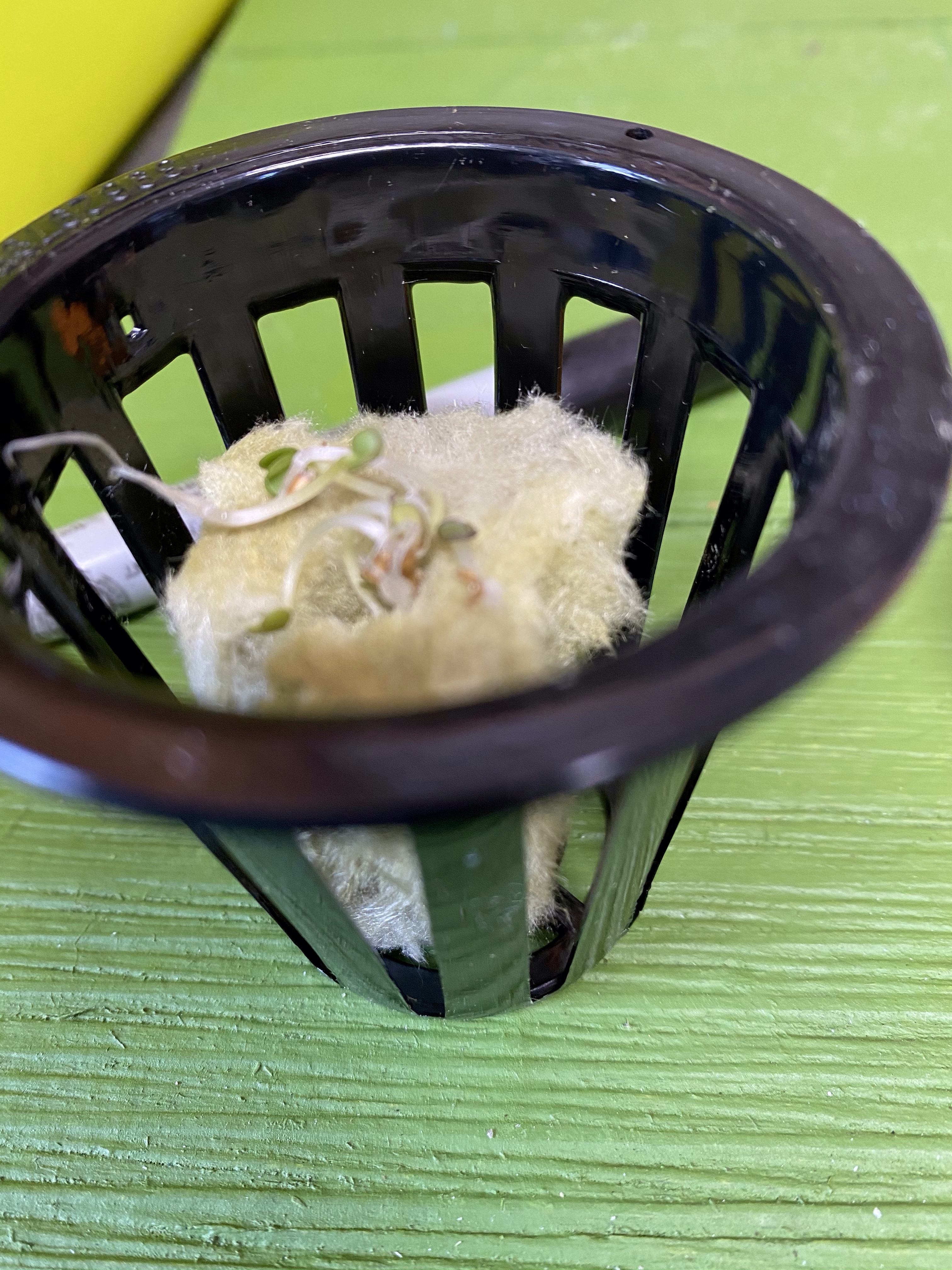 I placed the seeds in the rock wool, and turned on the pump.
