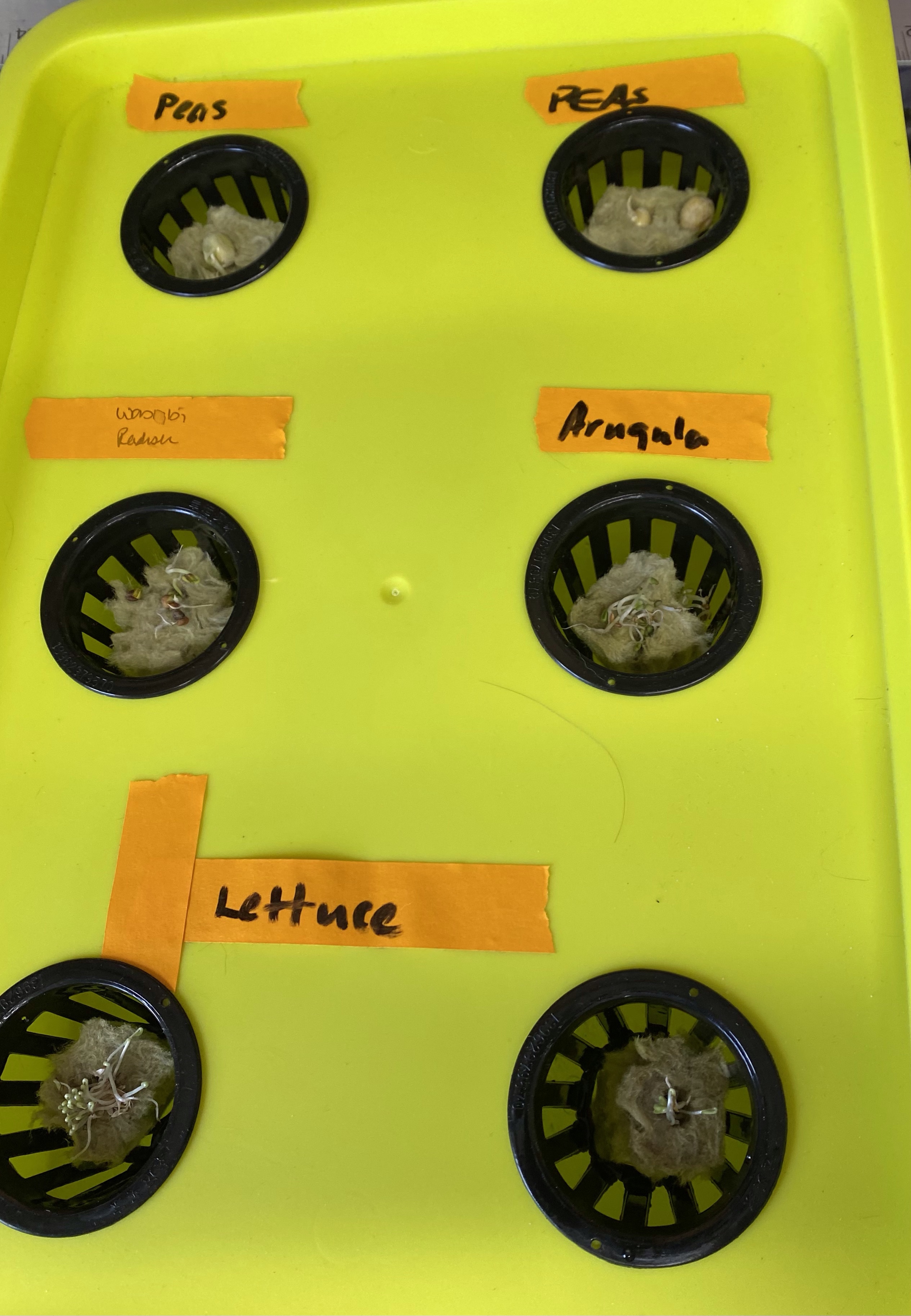 So one of the things I got for Christmas was a hydroponic system. I finally got it up and running today. I now have peas, arugula, lettuce and radishes growing in our office.