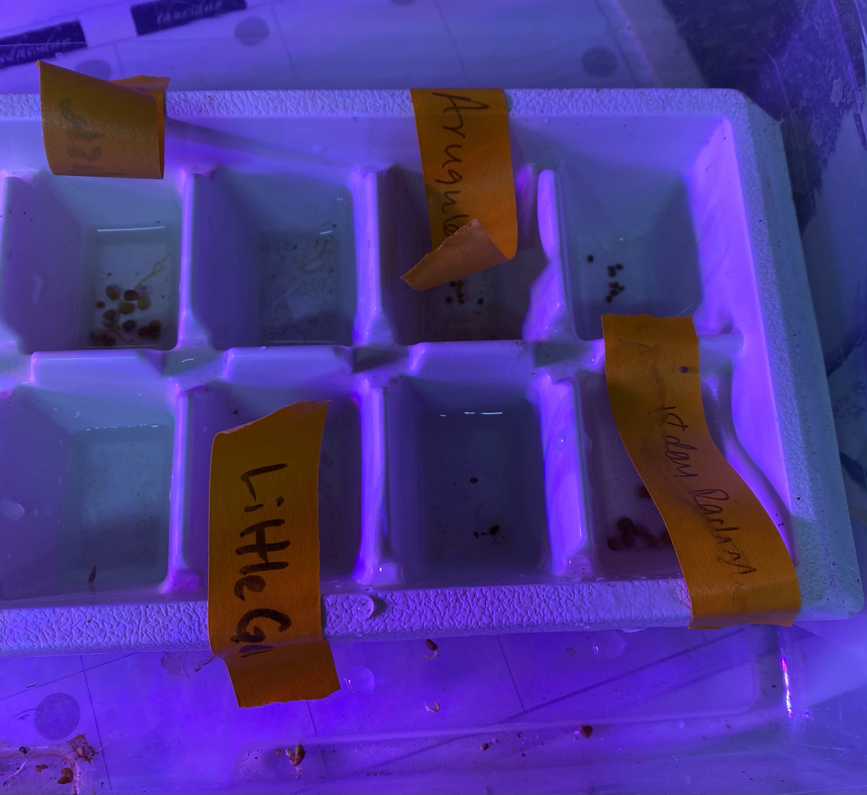 I’ve got some lettuce and radishes soaking. I’m going to bring them along a bit more before I put them in the hydroponic system. I’ve got my soil and jiffy pots ready for our seedlings, and I’m going to start some of this in there and let the roots grow a bit more before they go in the basket.
