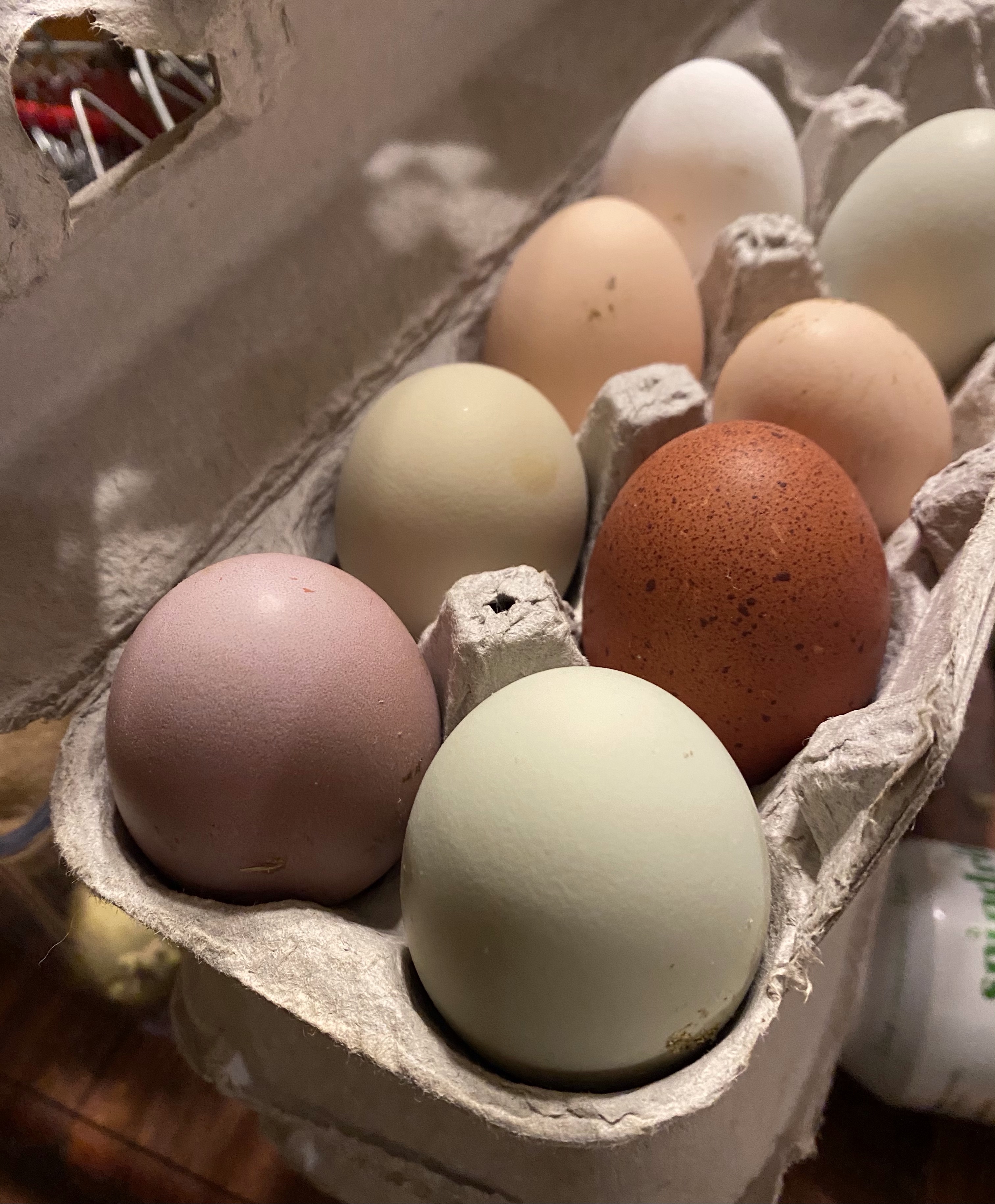 We just got our production back up. Eleven eggs today. Our incubator holds twelve eggs, so we need to get several of each color. The plan is:
