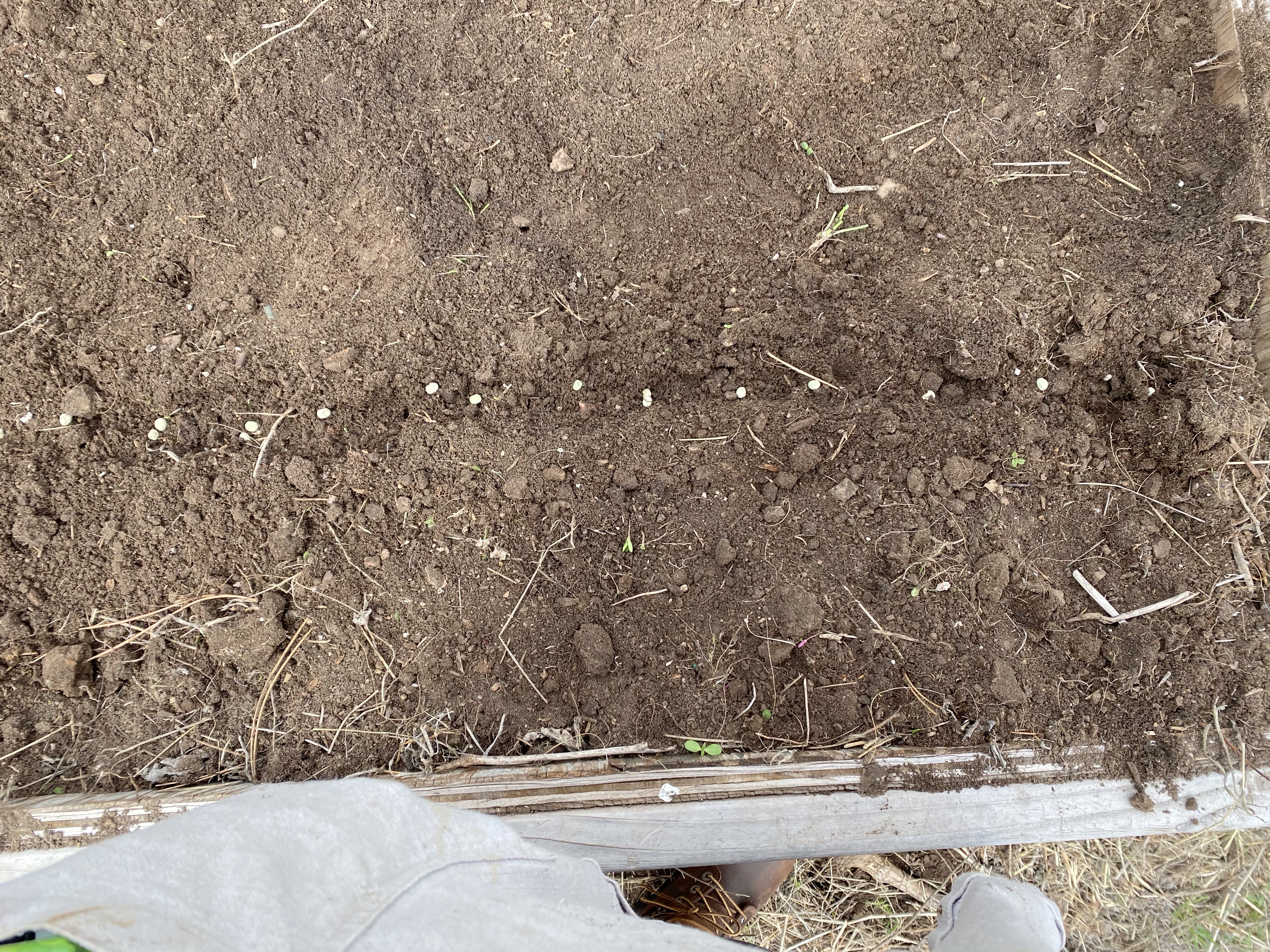 We have a bunch of raised beds around an area for row crops. I planted two beds with arugula, peas, radishes, and carrots.