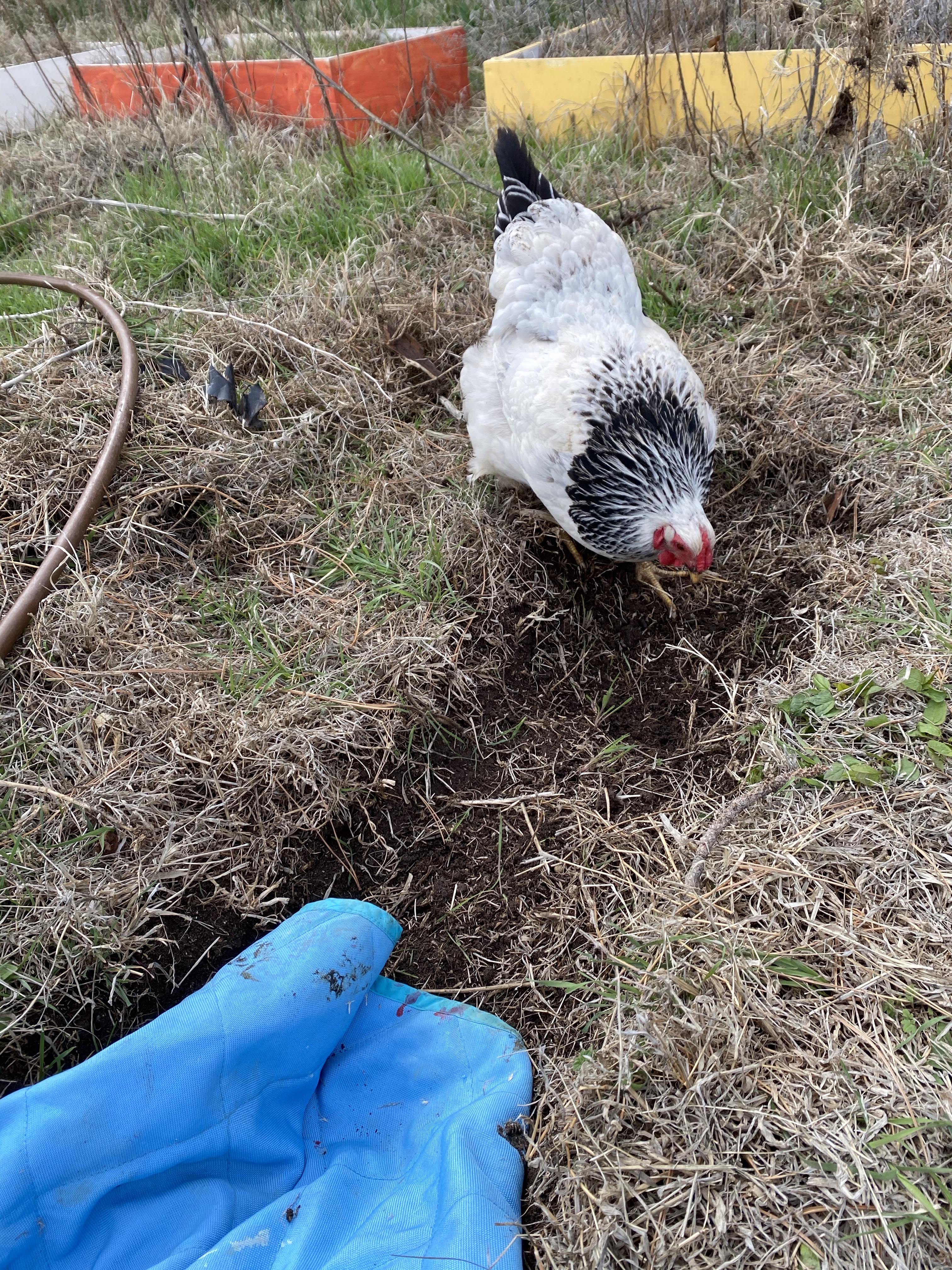 …and some not-help from Lou who, among other things, tried to sit in my lap, stepped on my hurt leg, pooped, dug in the trenches, and tried to chew my gloves.