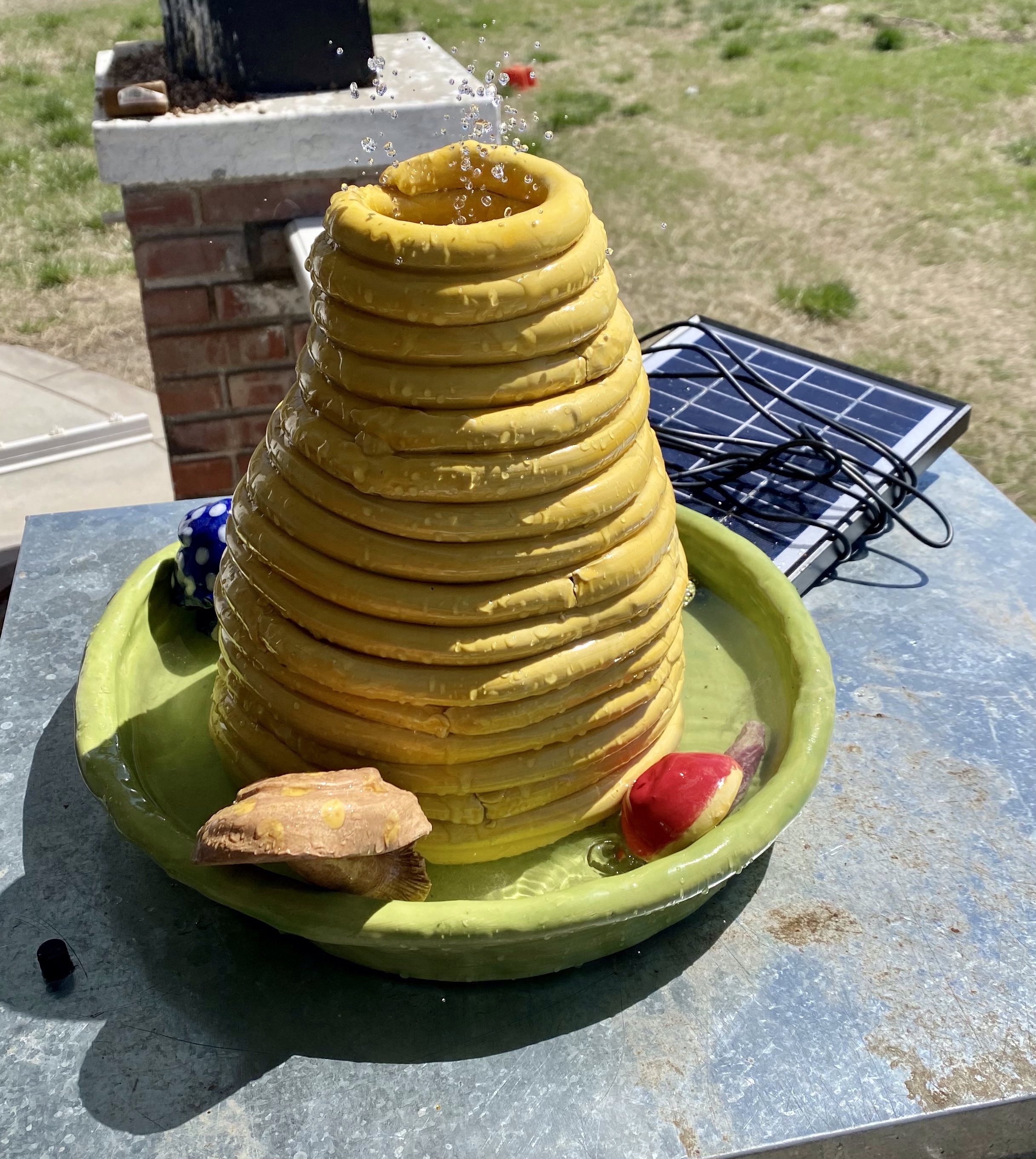 Back in 2018, I was playing with ceramics and decided to make a skep fountain. It was an early attempt, so it’s a bit lop sided, but I made it.