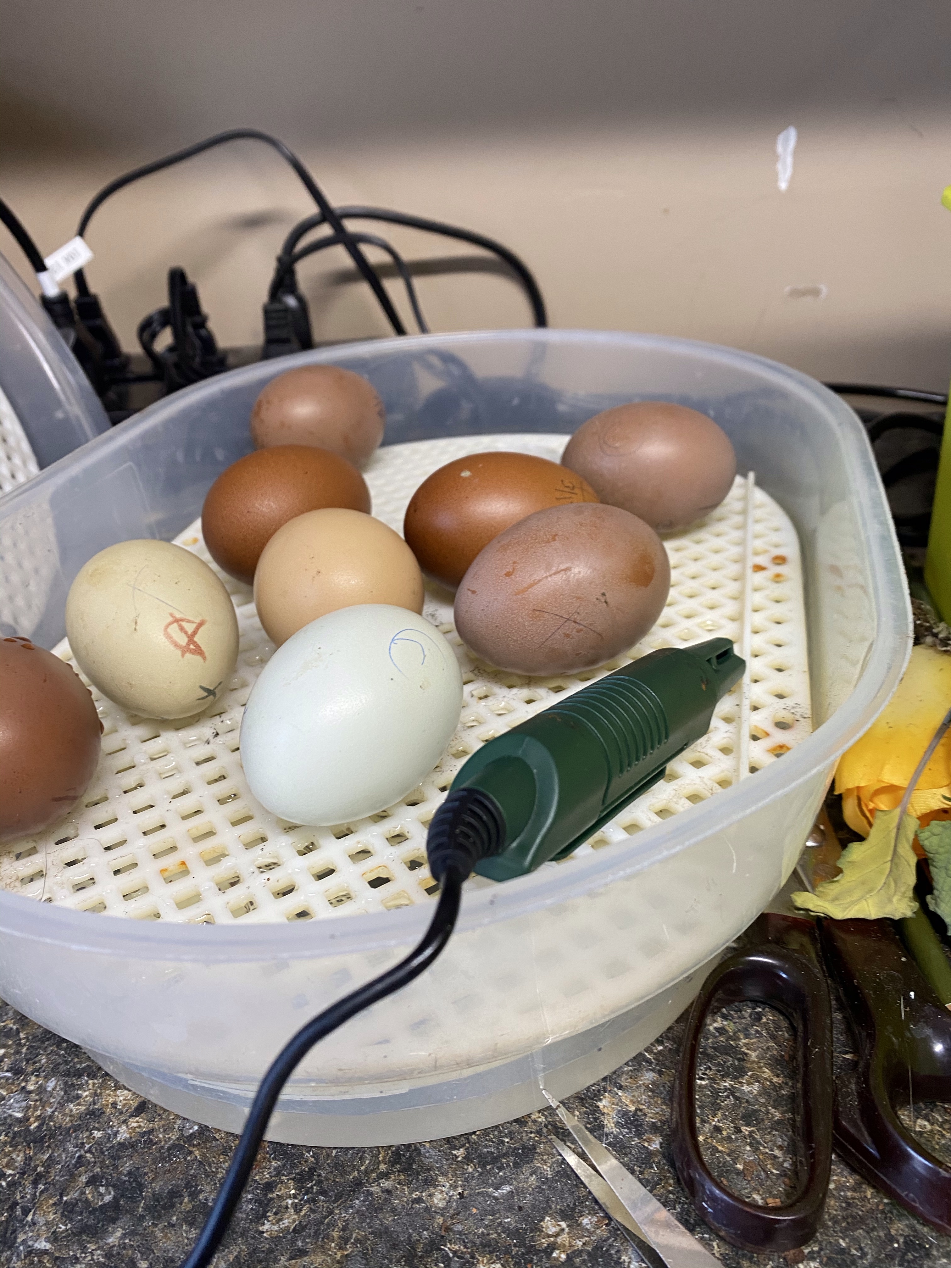 This year’s hatch may be a bust. The temperature on the brooder is jacked, and it was a little cool for a while. It may be laggy, it may just not happen. Or maybe it will go great and I’m just pessimistic.
