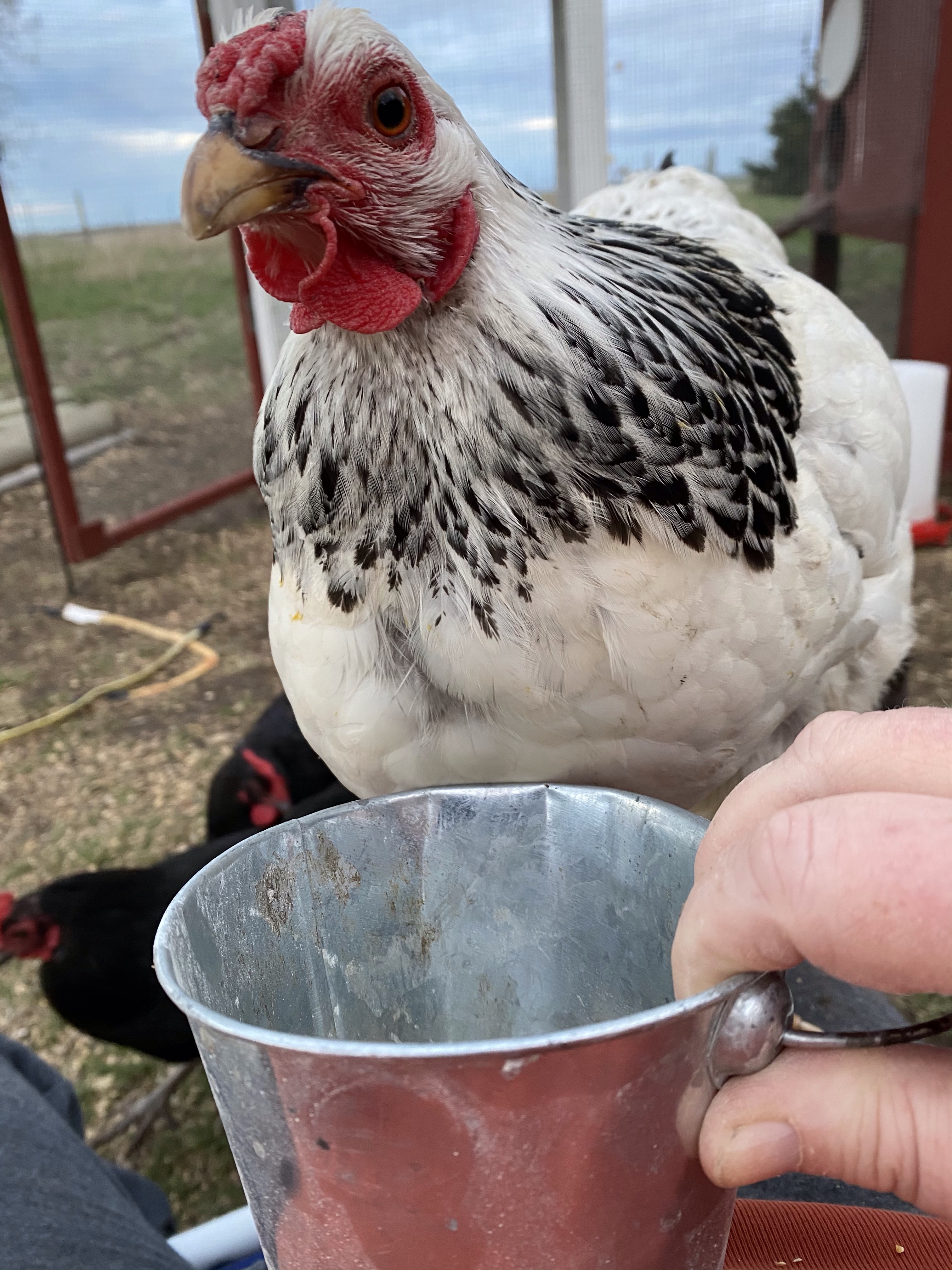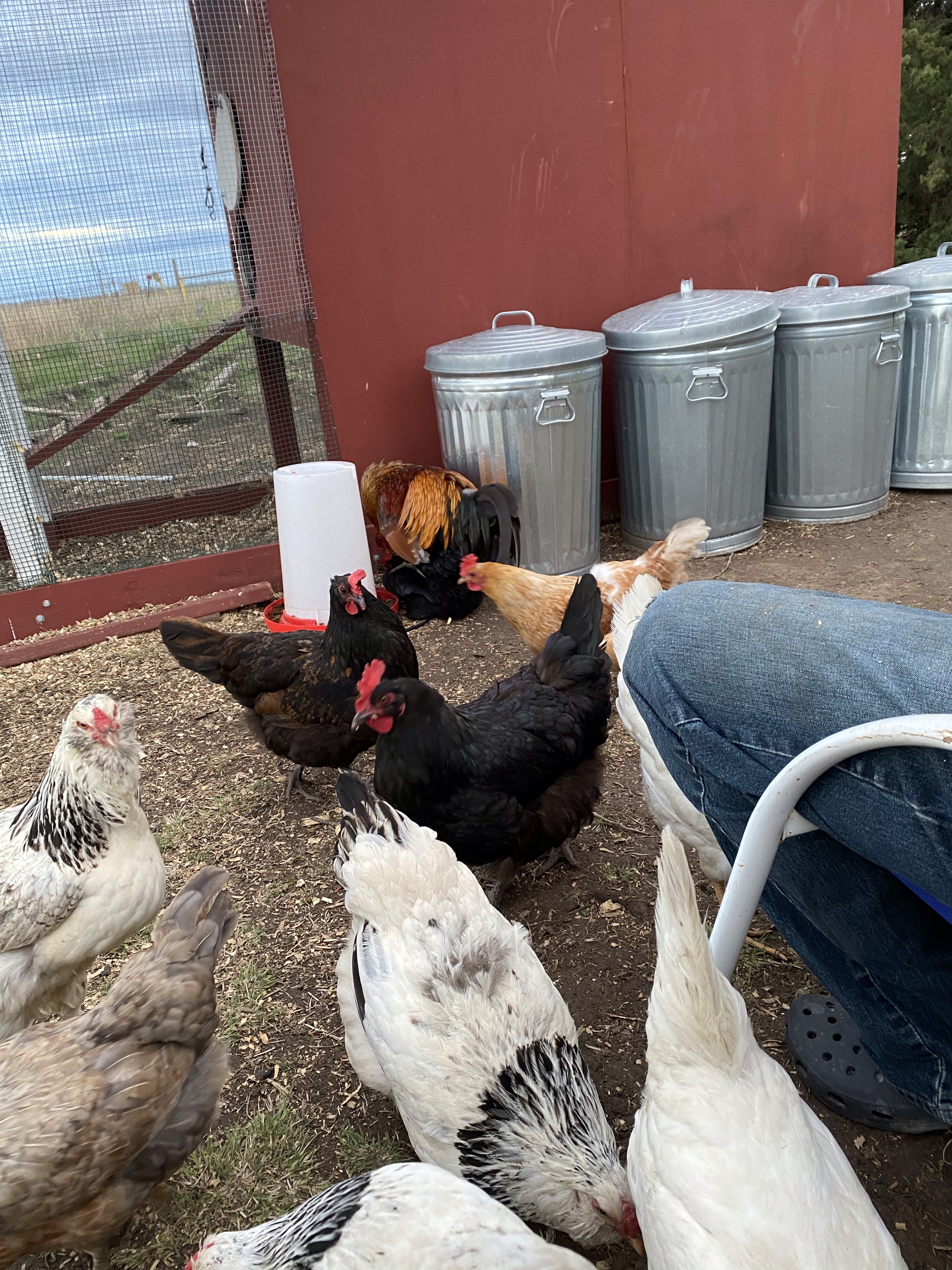 They are getting more and more used to being hand-fed. A couple will hop up in my lap if they aren’t getting enough.
