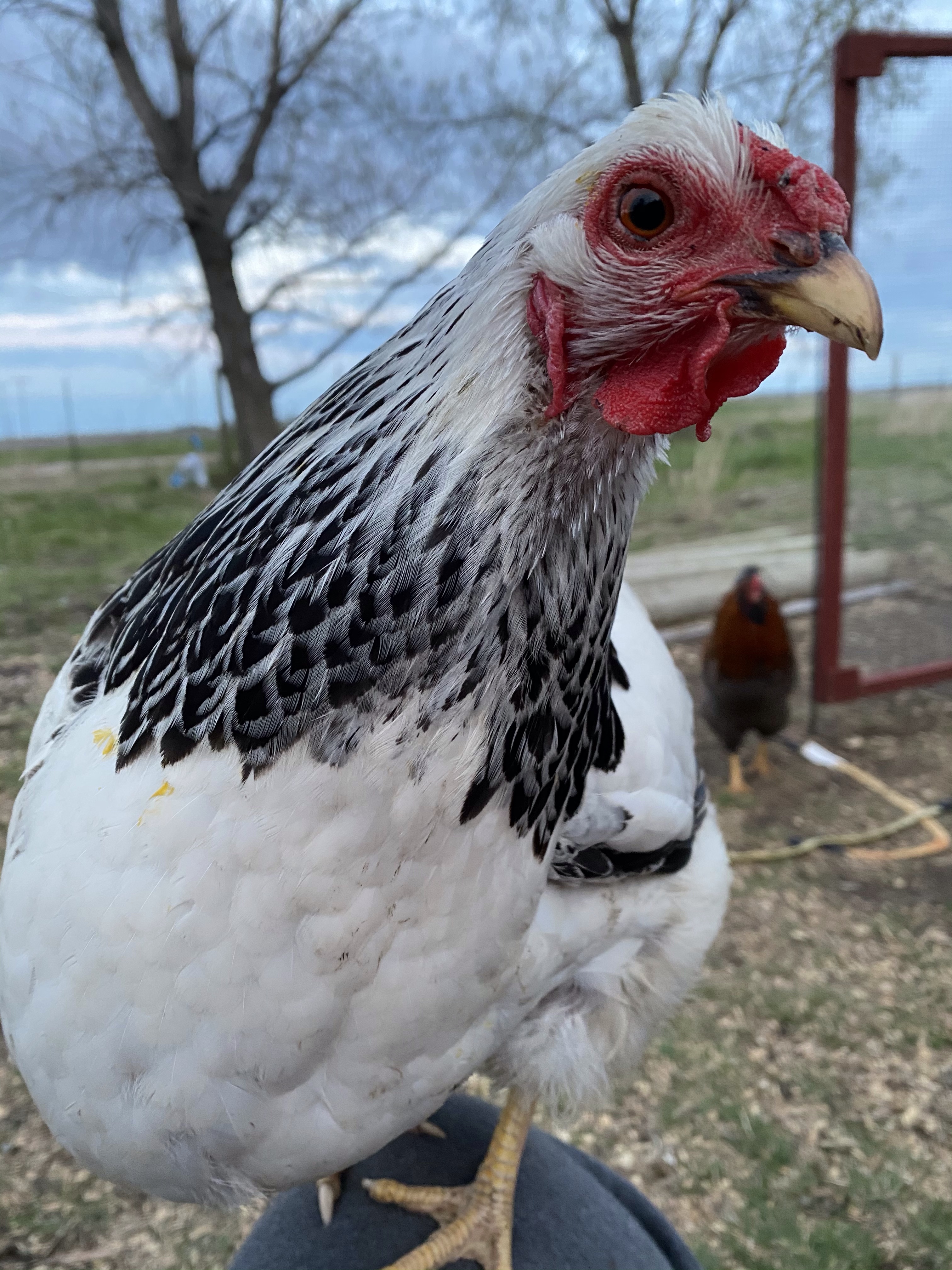 Yesterday was a blowy, rainy, yucky day. But it warmed up and cleared up in the evening. We had a busy day indoors, so it was nice to go and sit with the chickens.