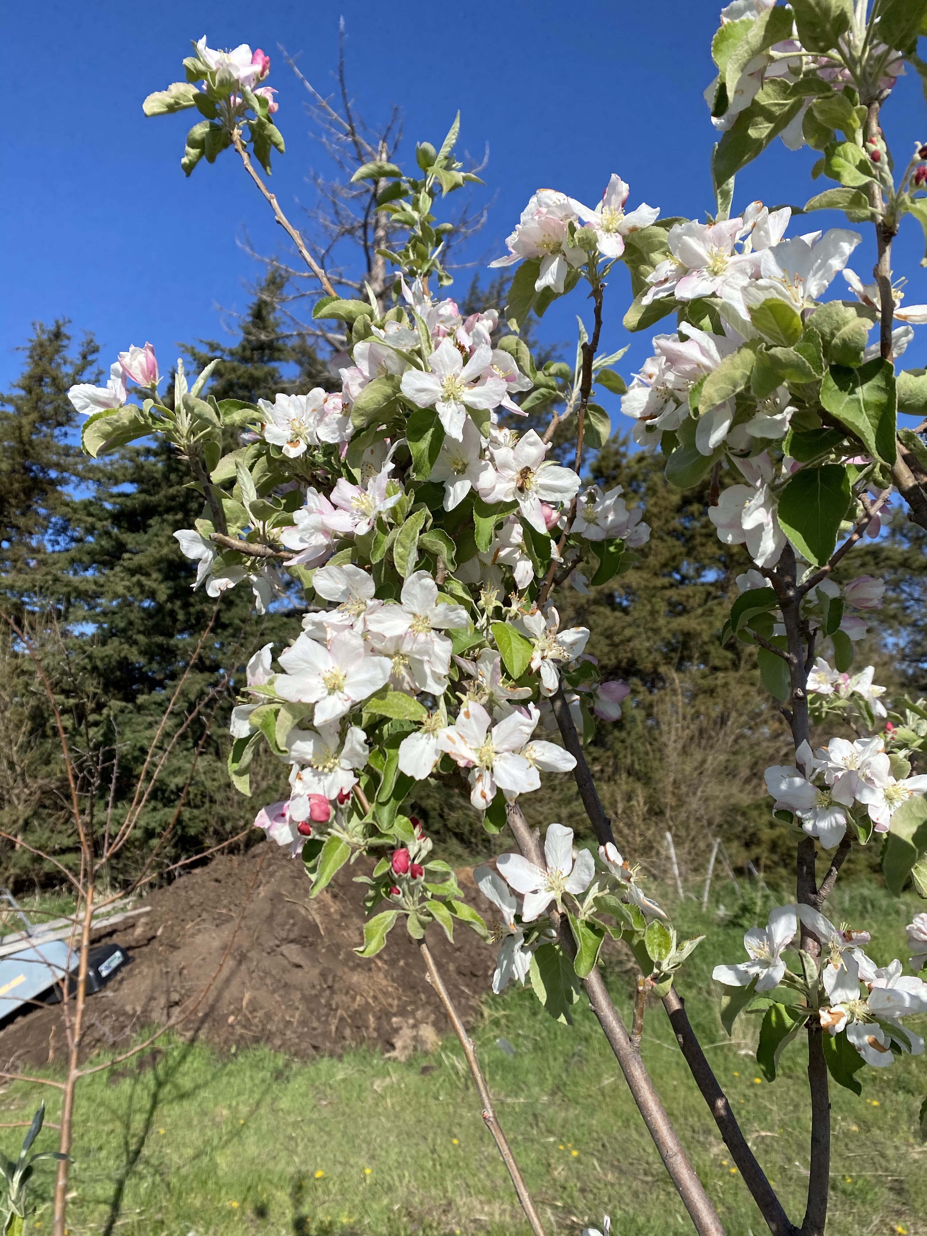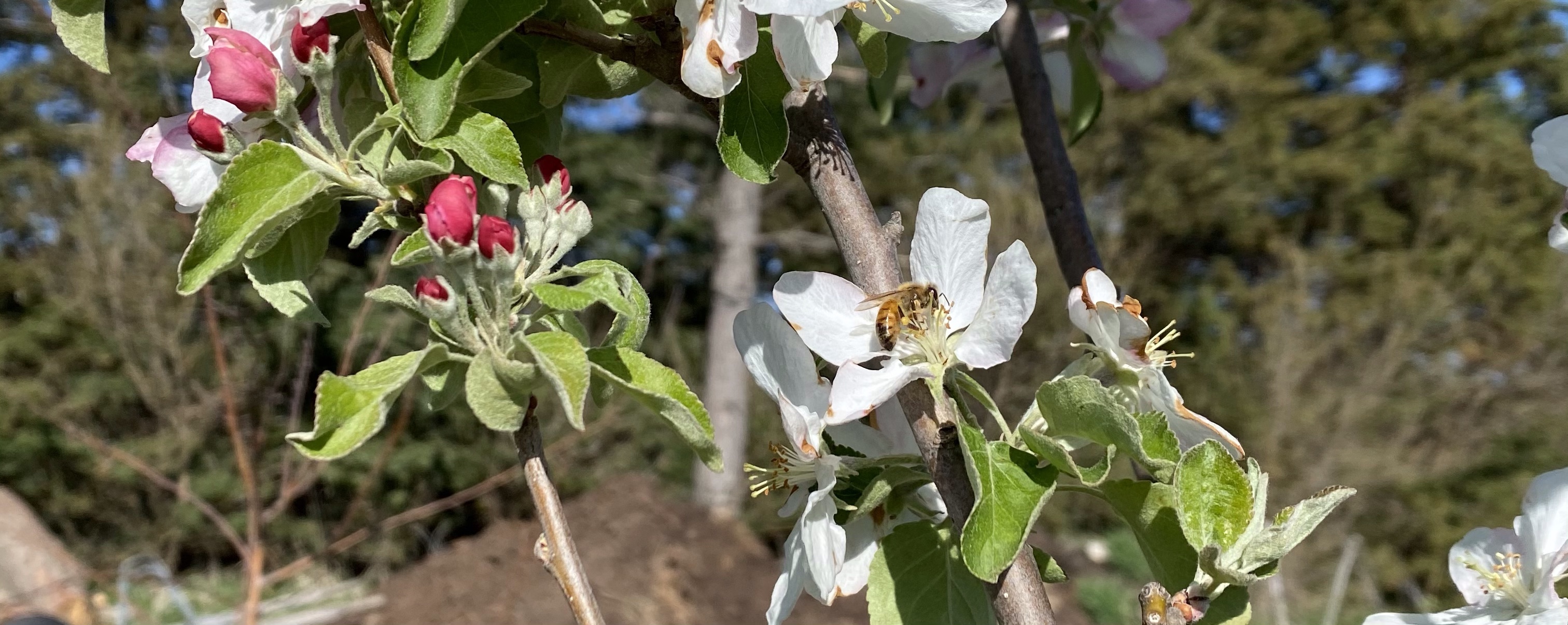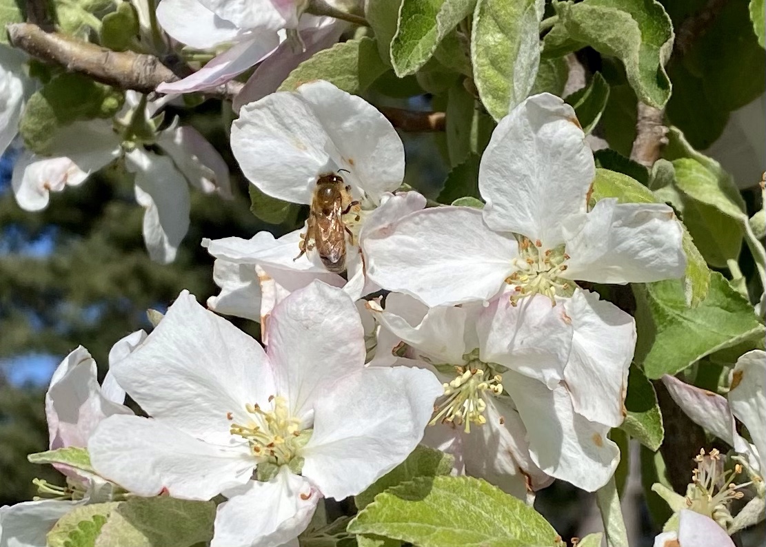 Our apple trees are in bloom and the bees are loving it!