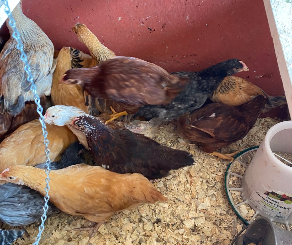 The little chicks are not so little now. So we needed to get them into their own coop as soon as possible.